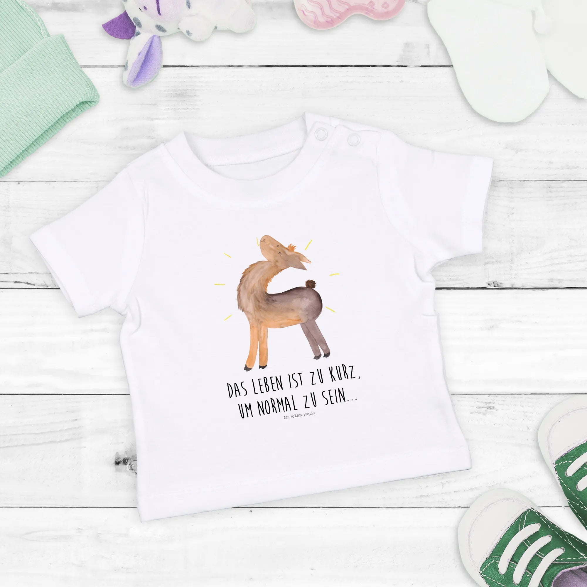 Das süße Lama stolz aus der Lama-Kollektion von Mr. & Mrs. Panda ist das perfekte Geschenk für alle kleinen Außenseiter und Individualisten! Es ist nicht nur ein einfaches Baby T-Shirt, sondern ein Statement für stolze Eltern und ihre einzigartigen Kinder. Das süße Design zeigt ein wunderschönes, handgezeichnetes Lama, das mit einem charmanten Blick direkt in dein Herz schaut. Mit seinem unbeschwerten und verspielten Ausdruck hebt es sich von der Masse ab und drückt den Gedanken aus: 'Das Leben ist zu kurz, um normal zu sein...'