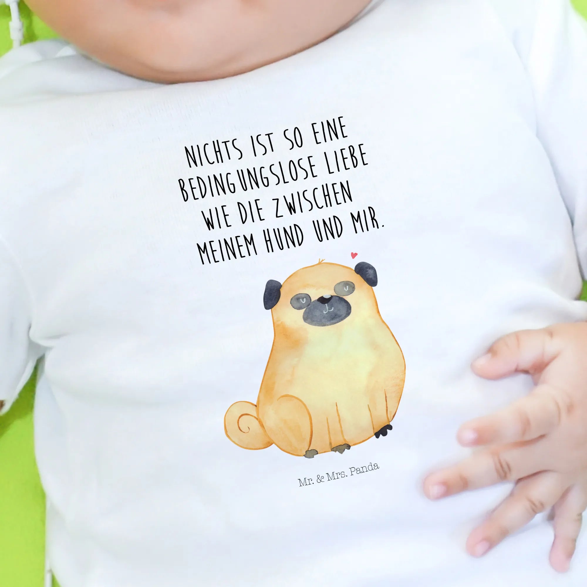 Das Motiv mit dem charmanten Mops ist von Mrs. Panda liebevoll entworfen und zeigt, wie bedingungslos die Liebe zwischen einem Hund und seinem Besitzer ist mit dem Spruch: "Nichts ist so eine bedingungslose Liebe wie die zwischen meinem Hund und mir." Ein echter Hingucker, der zeigt, dass der kleine Erdenbürger bereits große Gefühle für Tiere hat!
