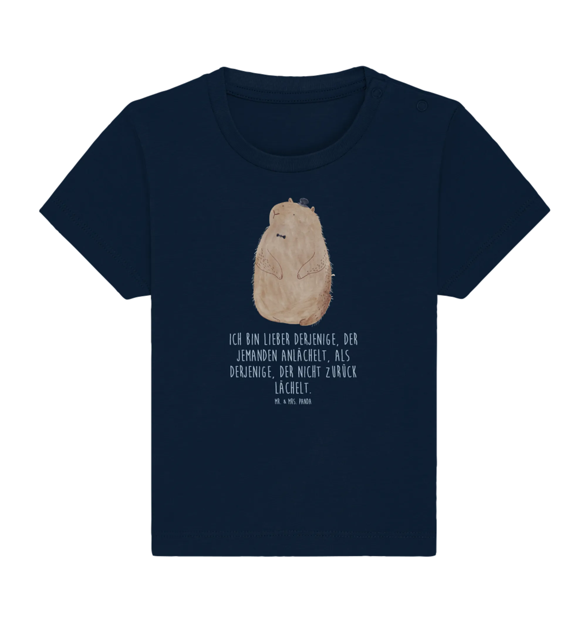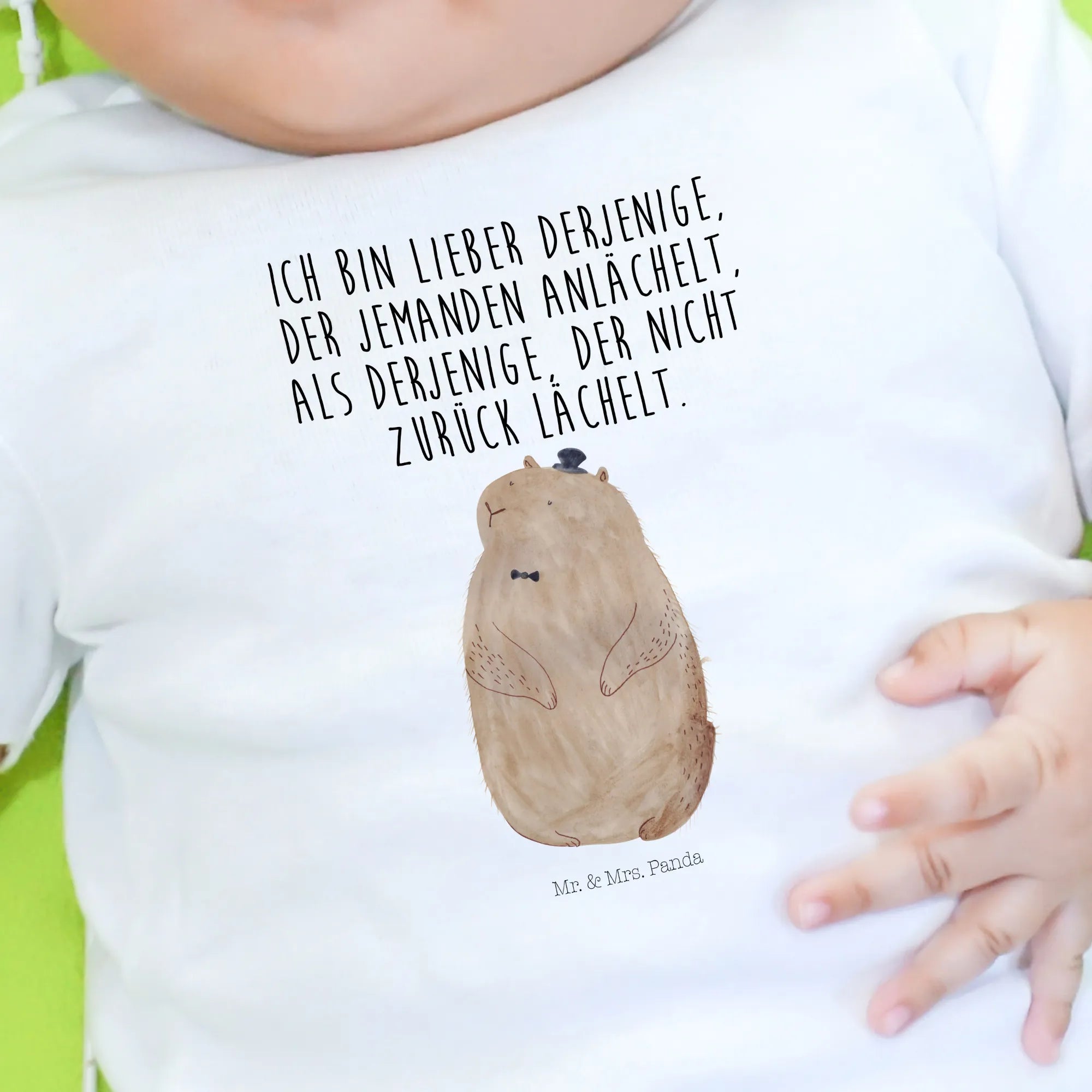 Ob zur Taufe, zum ersten Geburtstag oder einfach nur als süßes, alltägliches Outfit – unser Baby Shirt eignet sich für jeden Anlass. Das fröhliche Design, das mit viel Liebe zum Detail von Mrs. Panda handgezeichnet wurde, sorgt garantiert für gute Laune! Mit dem Aufdruck des Murmeltiers, das mit einem kleinen Zylinder auf dem Kopf daherkommt, wird Dein Baby zum Blickfang in jedem Raum. Die Botschaft, die hinter diesem Motiv steht, ist eine der Fröhlichkeit und des Respekts – Werte, die wir unseren Kleinen von Anfang an mit auf den Weg geben möchten.