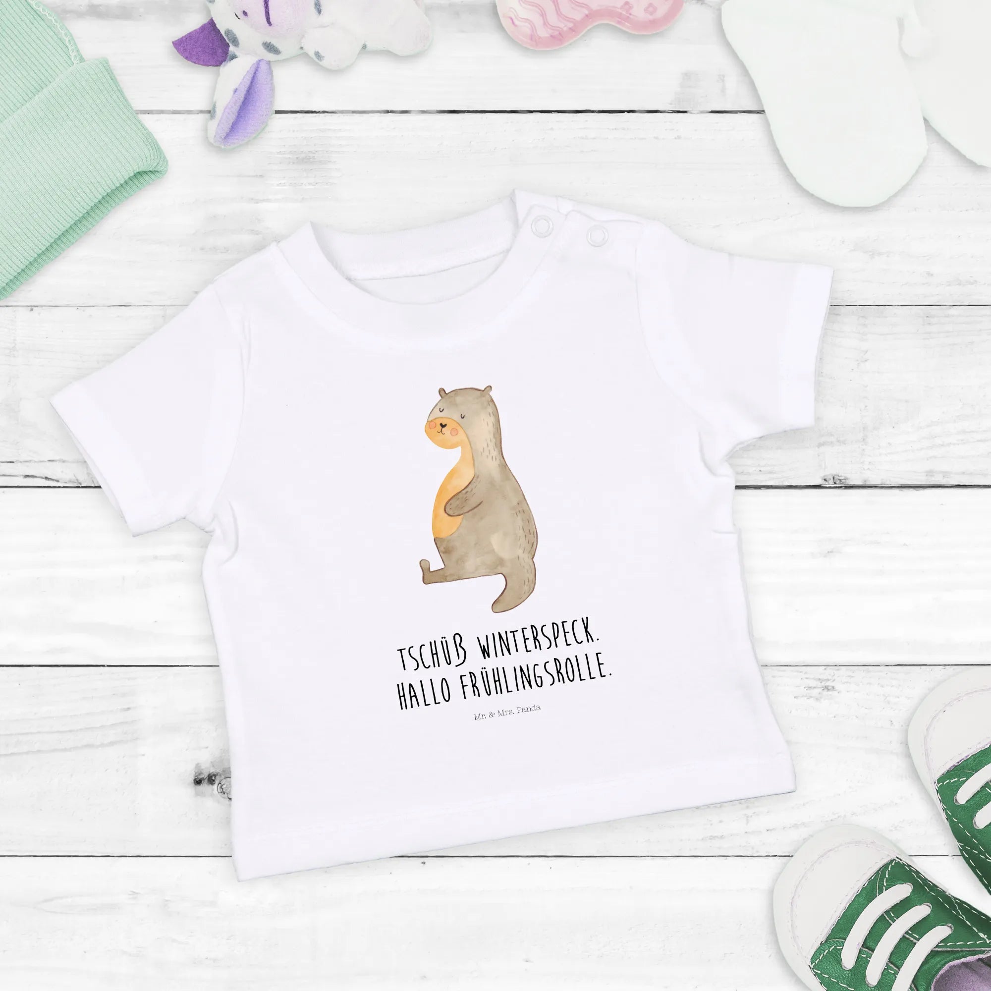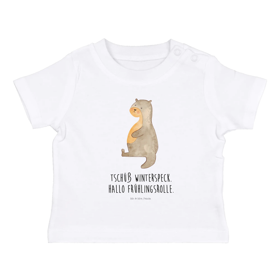 Perfekt geeignet als Mitbringsel zur Geburt, zum Babyshower oder einfach als liebevolle Aufmerksamkeit für einen besonderen Anlass. Die Otter-Kollektion von Mr. & Mrs. Panda ist ideal für alle Otter-Fans und bietet eine liebevolle Auswahl schöner Motive, die das Kinderzimmer dekorieren und das Herz erwärmen. Wer kann bei einem Otter mit einem dicken, glücklichen Bauch schon widerstehen? Dieses Baby Shirt sorgt garantiert nicht nur für Lächeln bei Eltern und Verwandten, sondern auch für viele entspannte Stunden bei den kleinsten Otter-Liebhabern.