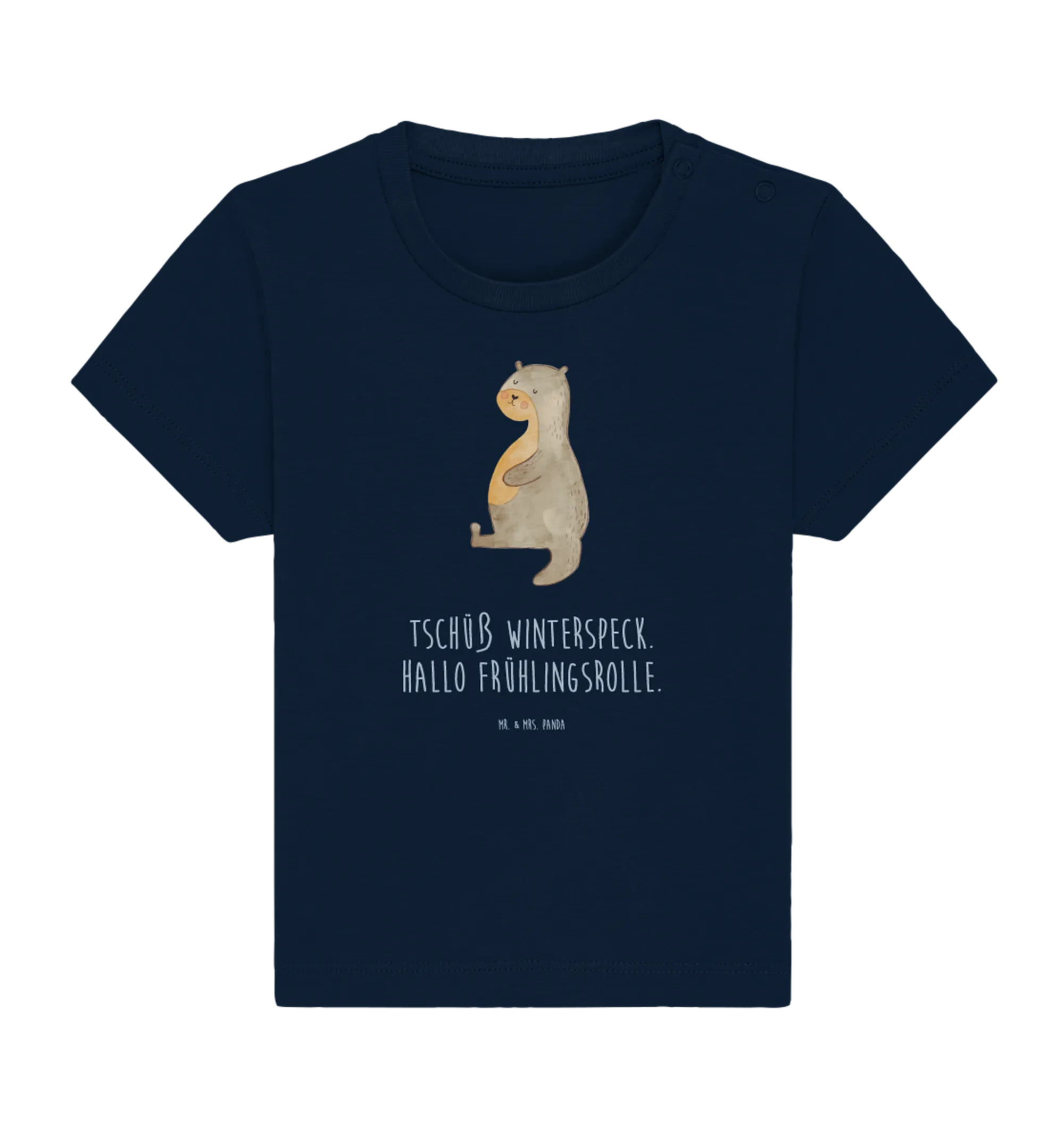 Die liebevoll handgezeichnete Illustration von einem zufriedenen Otter mit dickem Bauch vermittelt Gemütlichkeit und Entspannung. Mit dem Slogan 'Tschüß Winterspeck. Hallo Frühlingsrolle.' ist das Shirt ein echter Hingucker – nicht nur im Kinderzimmer, sondern auch bei Ausflügen mit Freunden und der Familie.