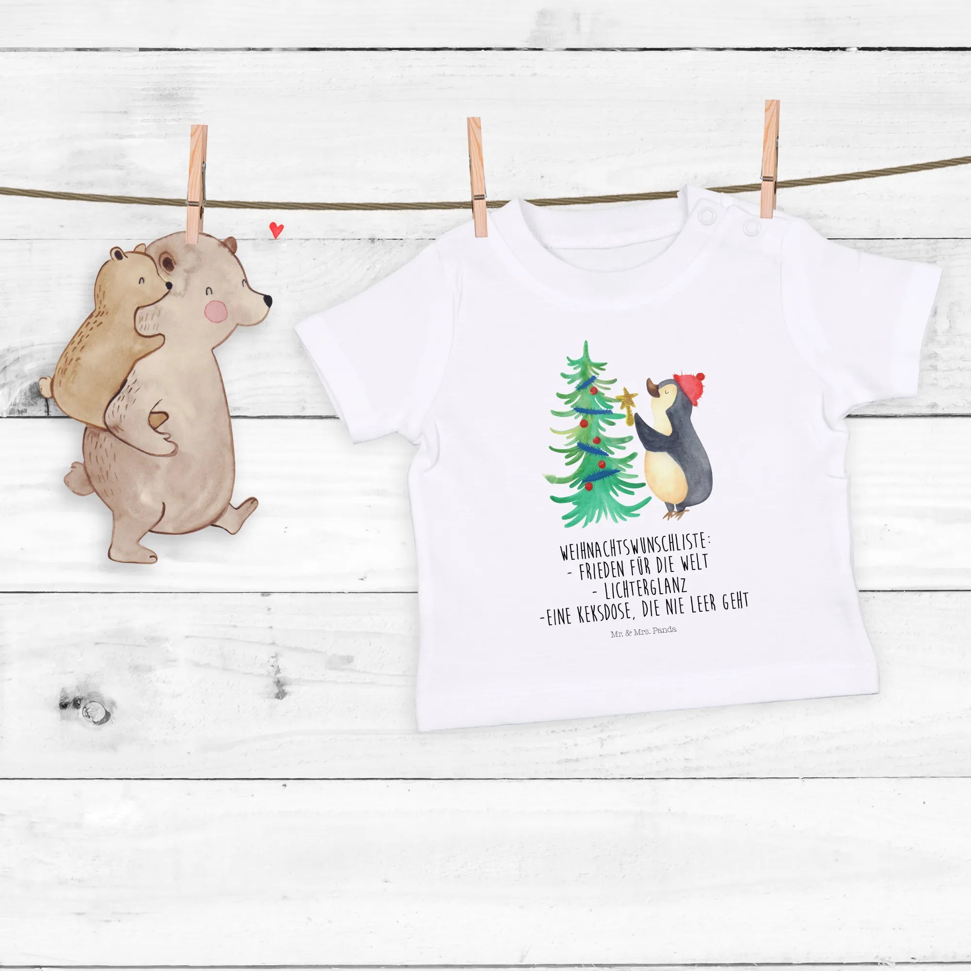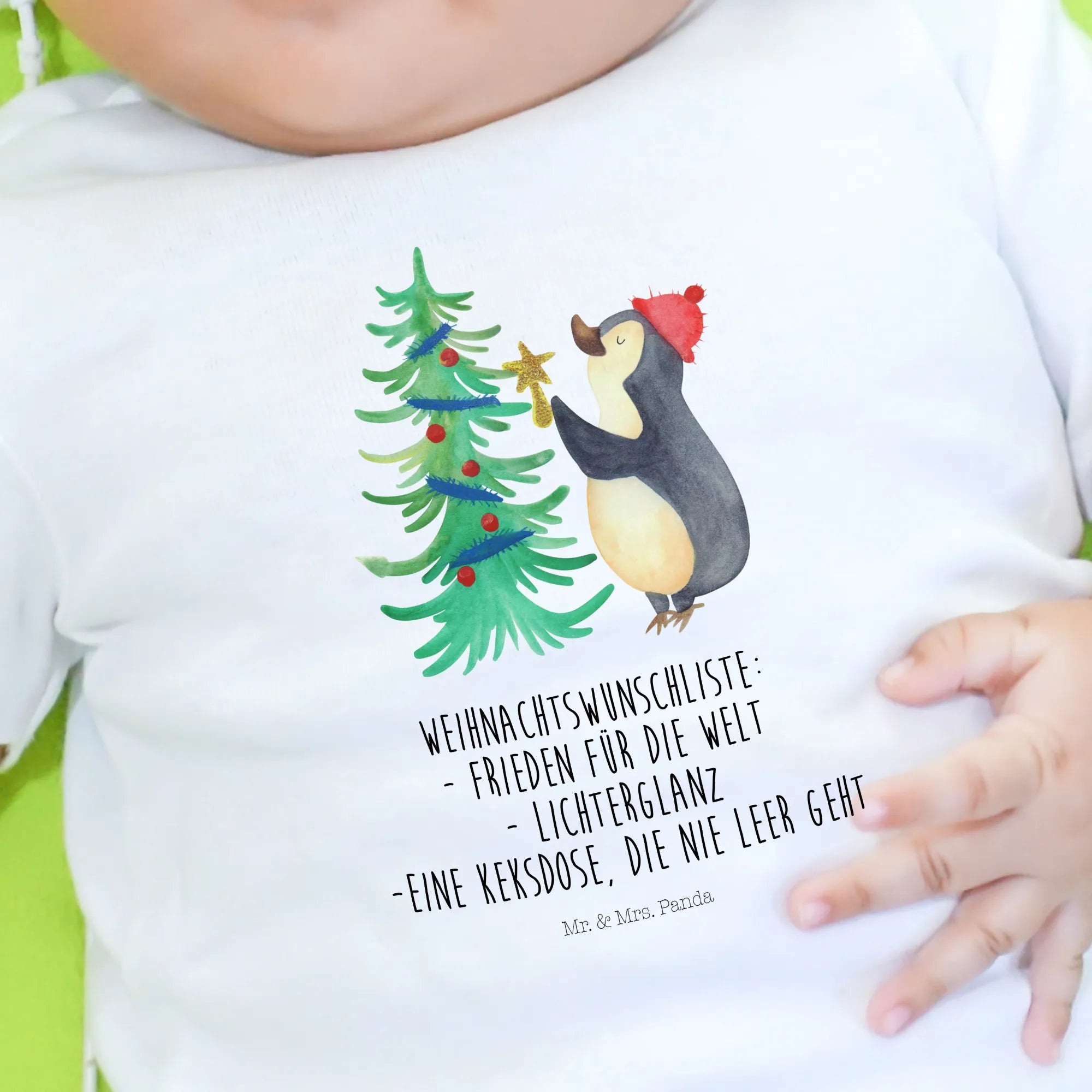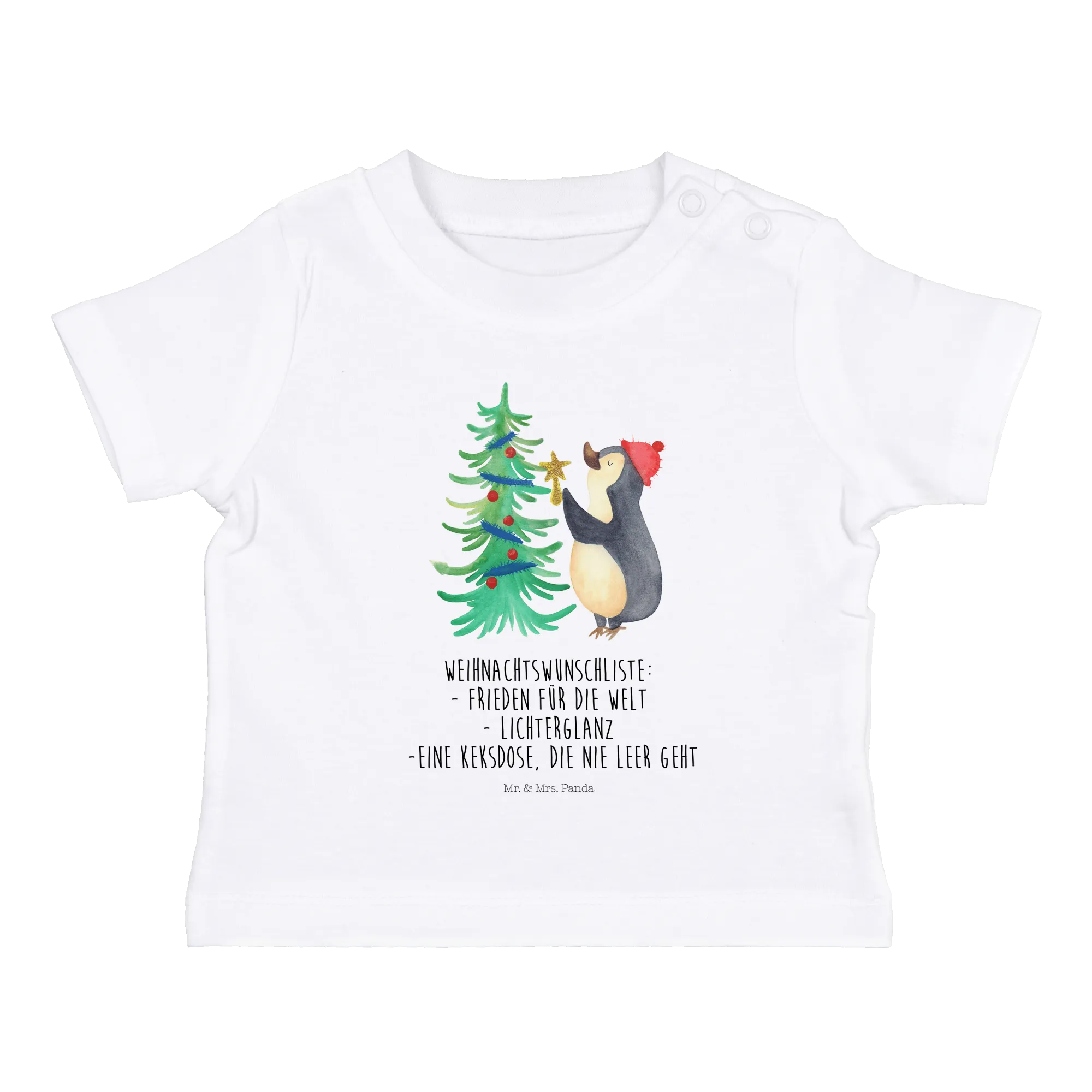 Das organische Baby T-Shirt mit dem niedlichen Pinguin Weihnachtsbaum Motiv aus der Winter Kollektion von Mr. & Mrs. Panda ist das perfekte Geschenk für die allerliebsten kleinen Erdenbürger. Es bringt die frohe Stimmung der Winter- und Weihnachtszeit direkt auf die zarte Haut der Kleinsten. Hergestellt aus hochwertiger Öko-Baumwolle, sorgt es für ein angenehm weiches Tragegefühl und ist sanft zur empfindlichen Babyhaut. Der zauberhafte Pinguin, der liebevoll einen Weihnachtsbaum schmückt, sorgt für ein breites Lächeln und lässt die Herzen der Eltern höher schlagen.