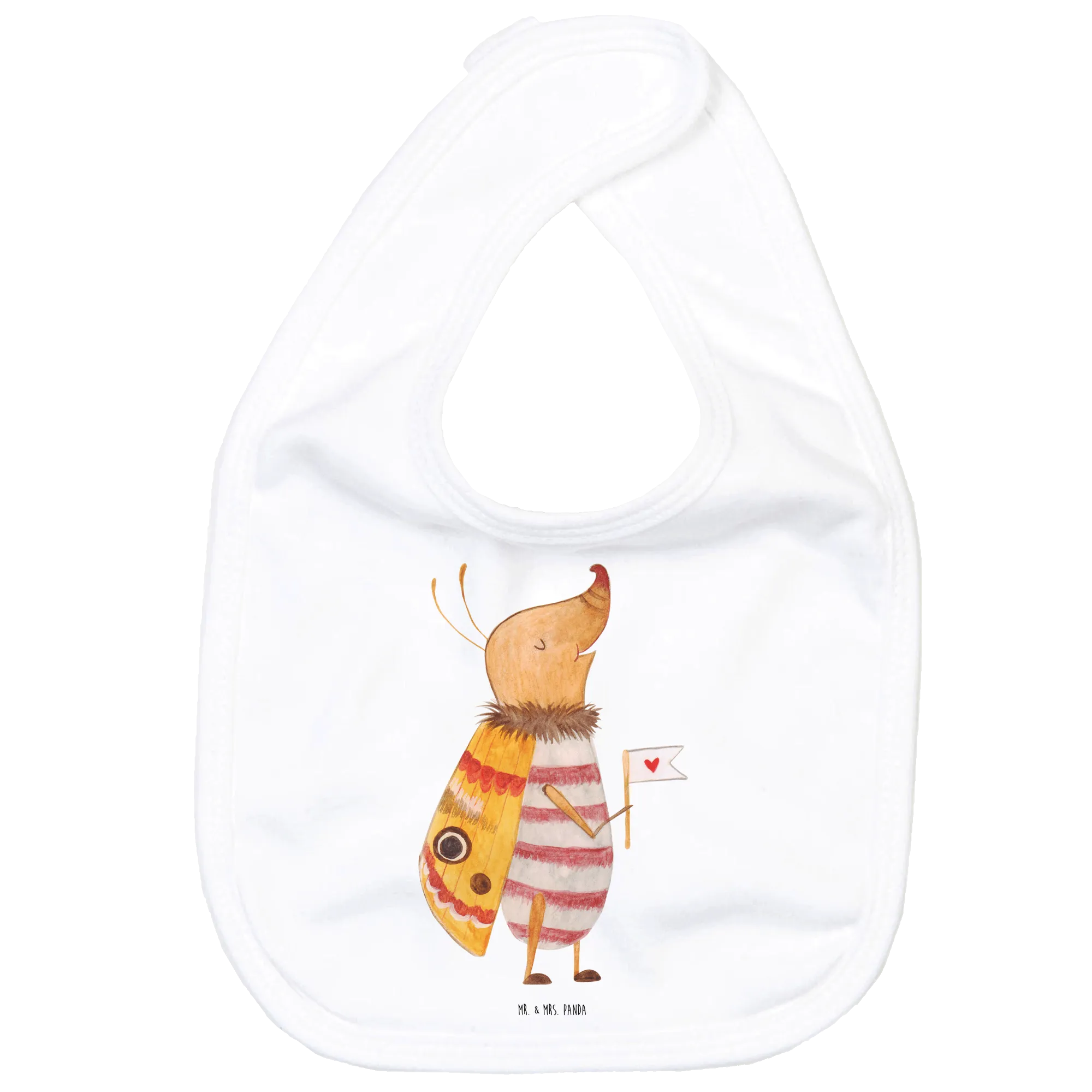 Warum ist dieses Lätzchen so besonders? Zunächst einmal ist es aus hochwertiger Öko-Baumwolle gefertigt, die nicht nur sanft zur zarten Babyhaut ist, sondern auch nachhaltig und umweltfreundlich. Die atemberaubenden Tiermotive aus der beliebten Small World Kollektion von Mr. & Mrs. Panda sorgen dafür, dass sowohl Babys als auch Eltern ihre Freude daran haben. Der kleine Nachtfalter mit seinem herzförmigen Fähnchen strahlt eine fröhliche und verspielte Ausstrahlung aus, die perfekt zu jedem Baby-Outfit passt.