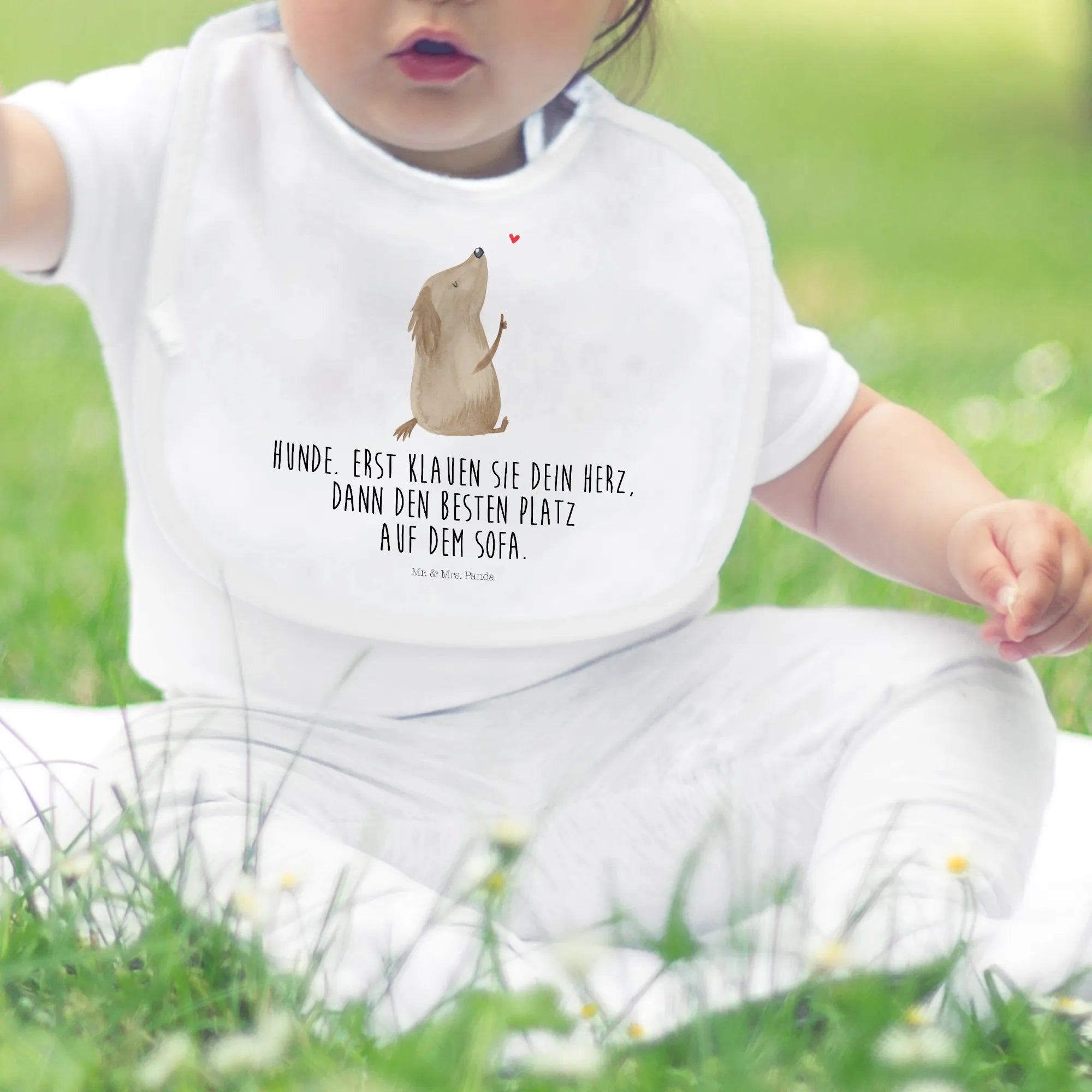 Schende Freude mit dem Bio Babylätzchen "Hund Liebe" aus der besonderen Hunde Kollektion von Mr. & Mrs. Panda und mache jeden Moment beim Essen zu einem unvergesslichen Erlebnis. Es ist das ideale Geschenk für alle Hundebesitzer, die die Liebe zu ihren Vierbeinern auch in der Babyausstattung zeigen möchten.