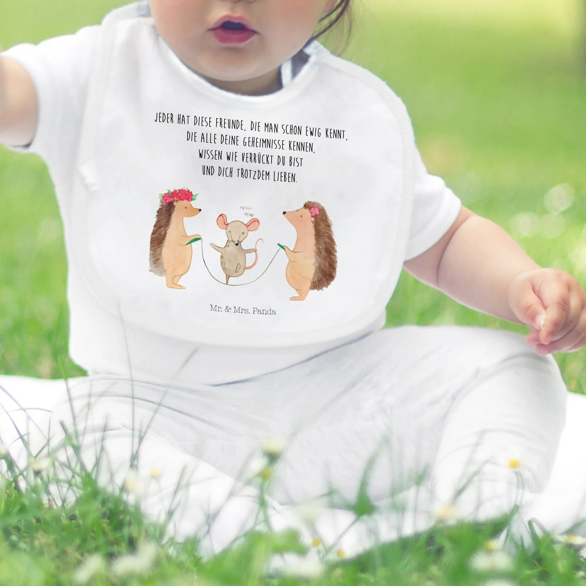 Das Mr. & Mrs. Panda Organic Babylätzchen mit dem fabelhaften Motiv Igel Seilhüpfen aus der zauberhaften Small World Kollektion ist das perfekte Geschenk für frisch gebackene Eltern! Ob zur Geburt, zur Babyparty oder einfach nur, um kleinen Erdenbürgern eine Freude zu bereiten – dieses Lätzchen vereint Funktionalität und Stil auf schöne Weise.