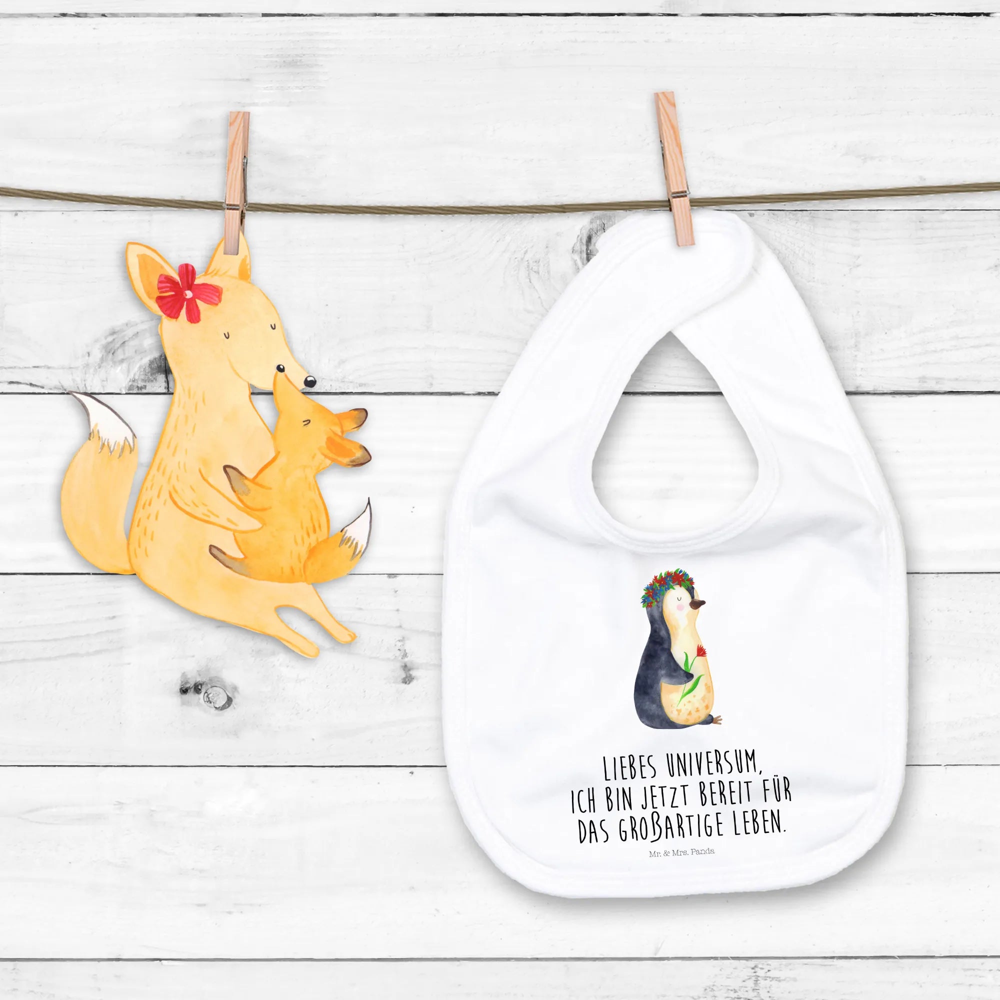 Die Pinguin-Kollektion von Mr. & Mrs. Panda bietet Dir nicht nur ein niedliches Design, sondern auch eine Botschaft: "Liebes Universum, ich bin jetzt bereit für das großartige Leben –" Eine kleine, aber bezaubernde Erinnerung daran, das Leben voller Freude und Neugier zu genießen. Dieses Lätzchen ist ein wunderbares Geschenk zur Geburt oder zur Babyparty und bringt dem Baby nicht nur einen Hauch von Stil, sondern auch eine Portion Lebensfreude.
