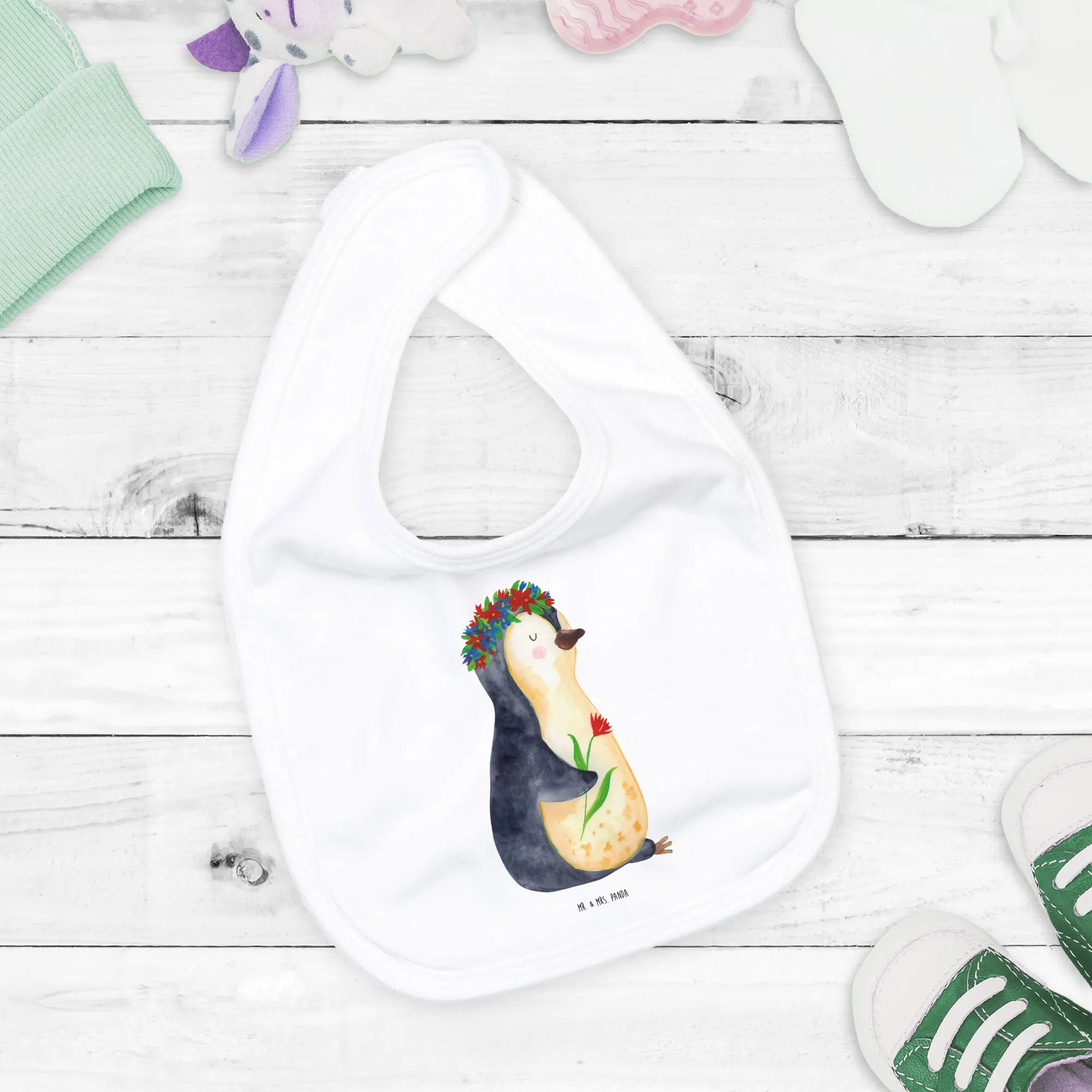 Organic Babylätzchen Pinguin Blumen - mit Spruch