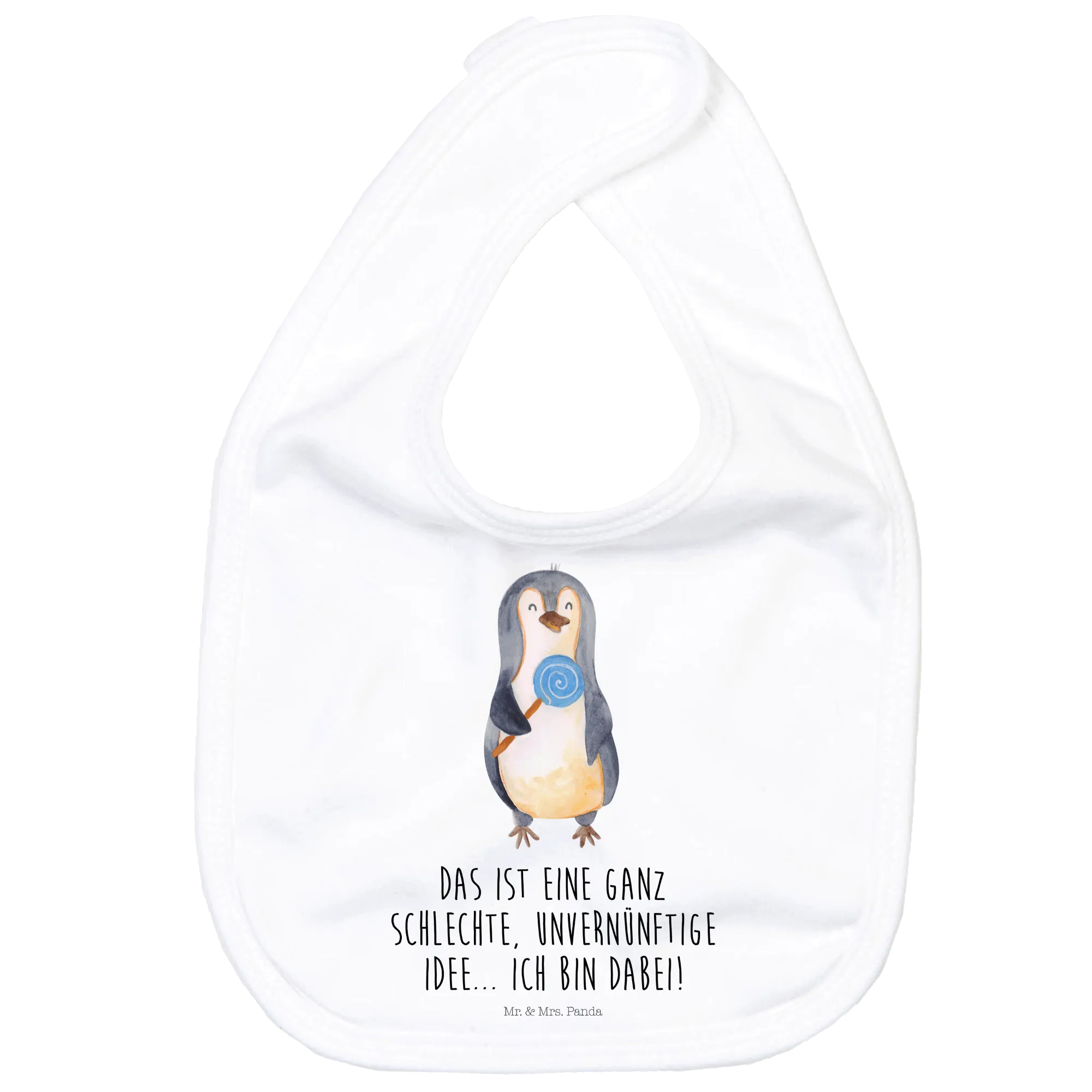 Du wirst feststellen, dass das Pinguin Lolli Lätzchen nicht nur funktional ist, sondern auch durch den lustigen Spruch „Das ist eine ganz schlechte, unvernünftige Idee... Ich bin dabei!“ dem Ganzen eine fröhliche Note verleiht. Das macht es zu einer tollen Wahl für alle, die auf der Suche nach einem besonderen und praktischen Geschenke sind.