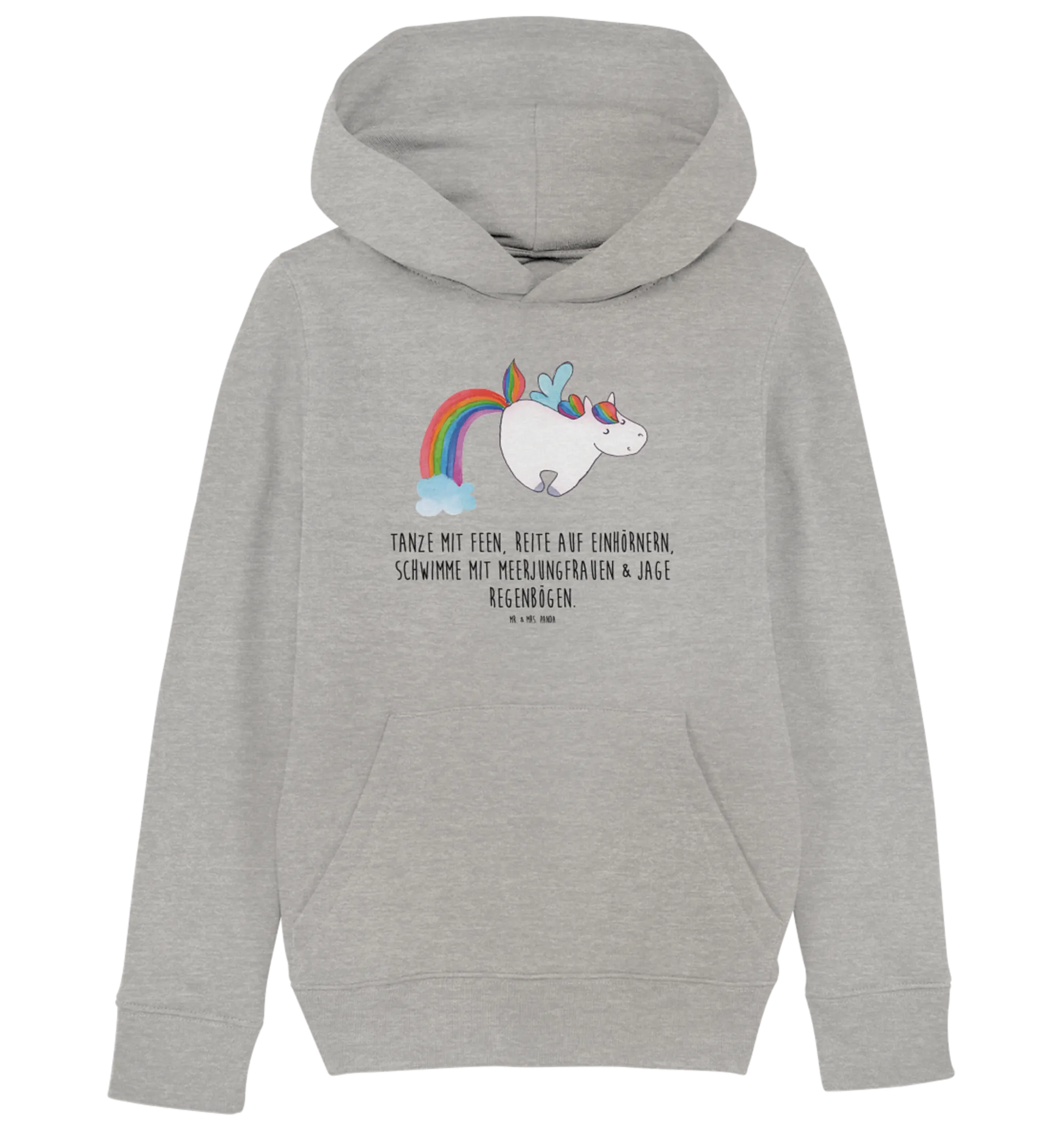 Die Einhorn Kollektion von Mr. & Mrs. Panda vereint magische Designs und inspirierende Motive, die von Mrs. Panda liebevoll handgezeichnet wurden. Mit Sprüchen wie „Tanze mit Feen, reite auf Einhörnern, schwimme mit Meerjungfrauen & jage Regenbögen“ bringt dieser Hoodie die Phantasie zum Leben. Der Kinder Hoodie ist nicht nur ein modisches Produkt, sondern auch ein wunderschönes Geschenk, das Kinderaugen zum Strahlen bringt. Egal ob für ein Geburtstagsgeschenk für ein Mädchen, als süßes Überrauschungsgeschenk oder einfach nur, um die eigenen Kinder zu beschenken - der Organic Kinder Hoodie ist immer die richtige Wahl.