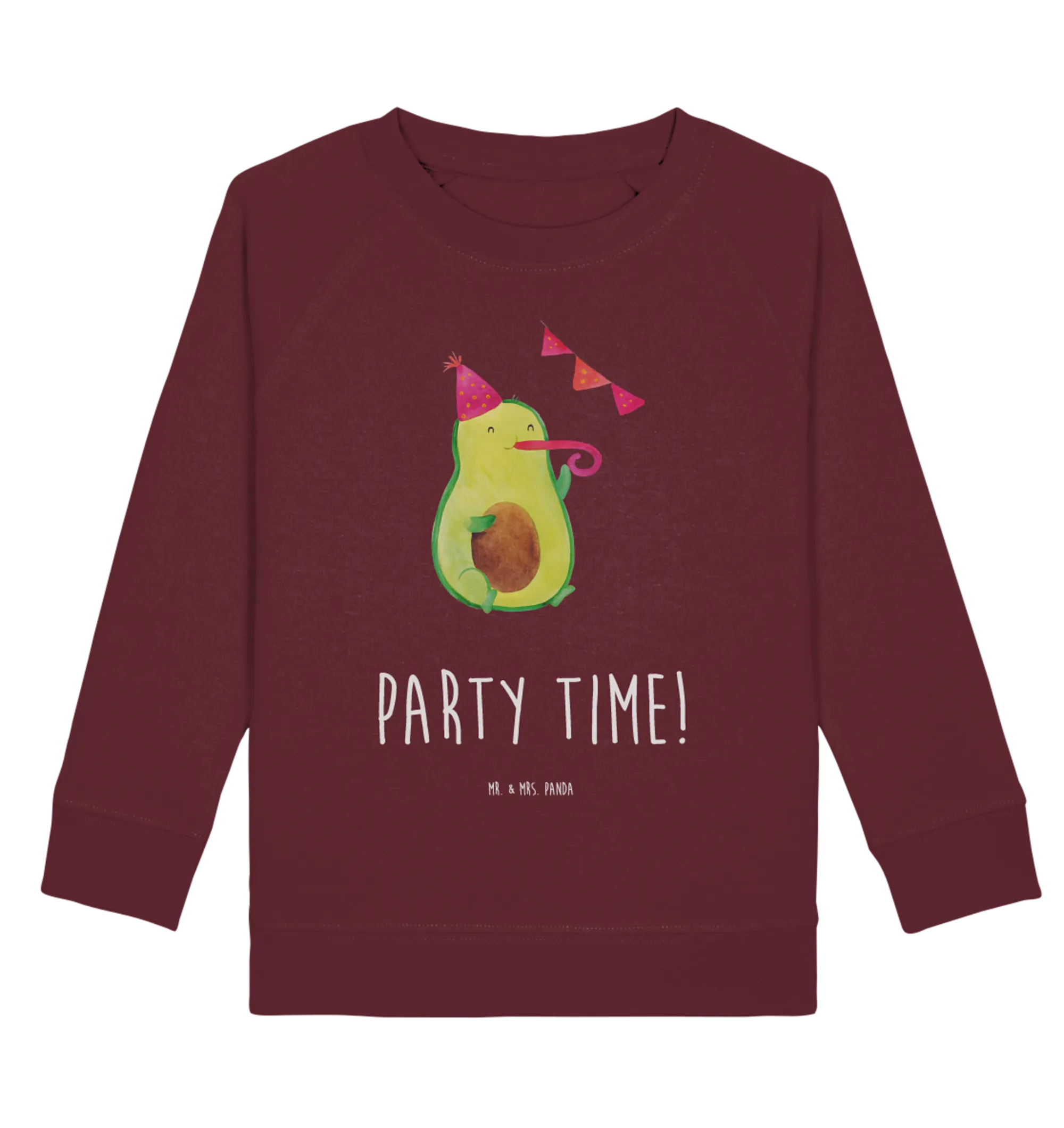 Der niedliche Aufdruck zeigt eine süße Avocado, die einen Partyhut auf hat und fröhlich in eine Partypfeife pustet. Mit dem Slogan "Party time!" zaubert er jedem Kind ein Lächeln ins Gesicht und macht jede Feier zu etwas ganz Besonderem.