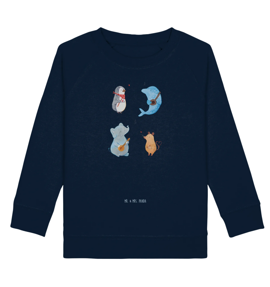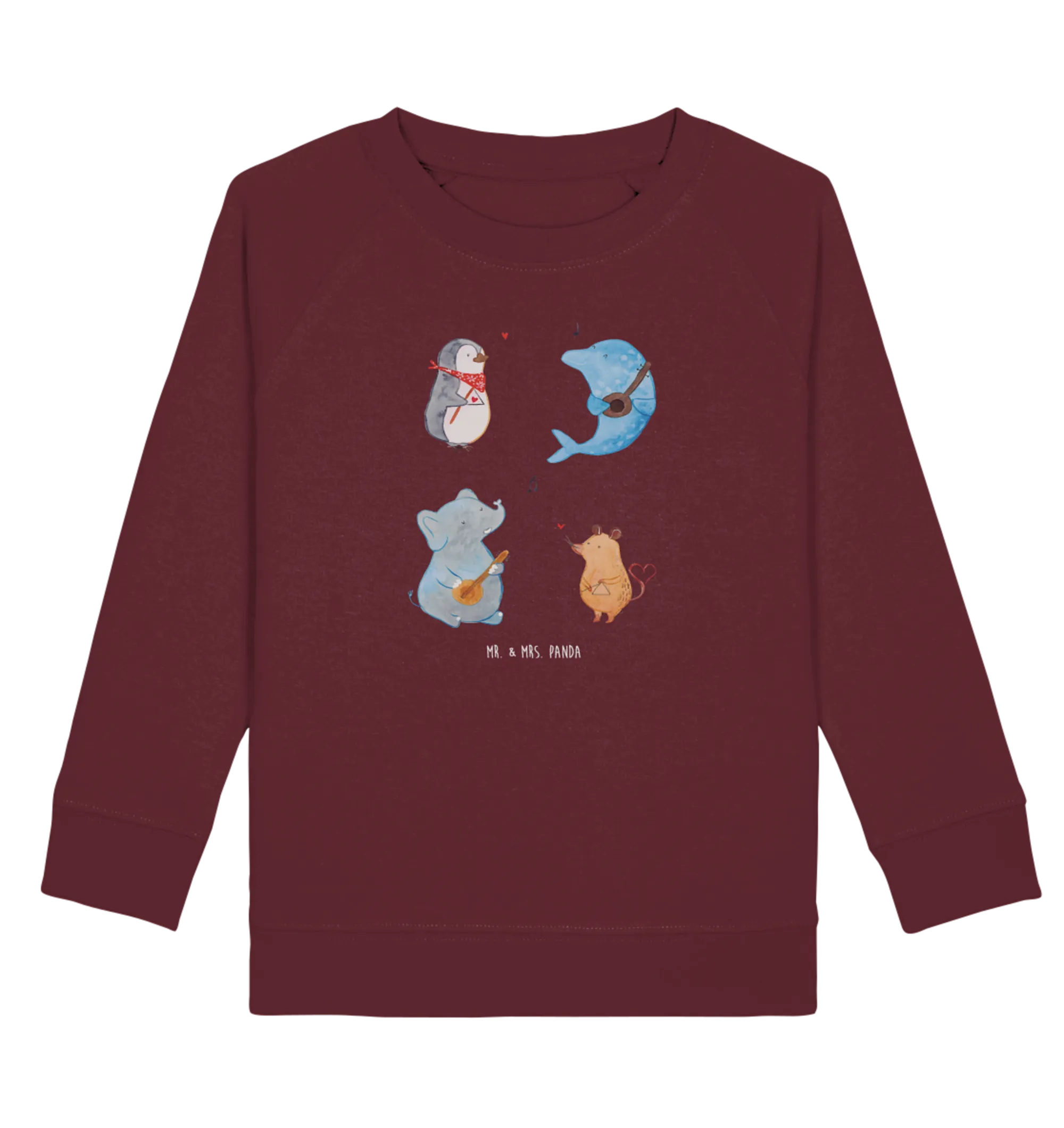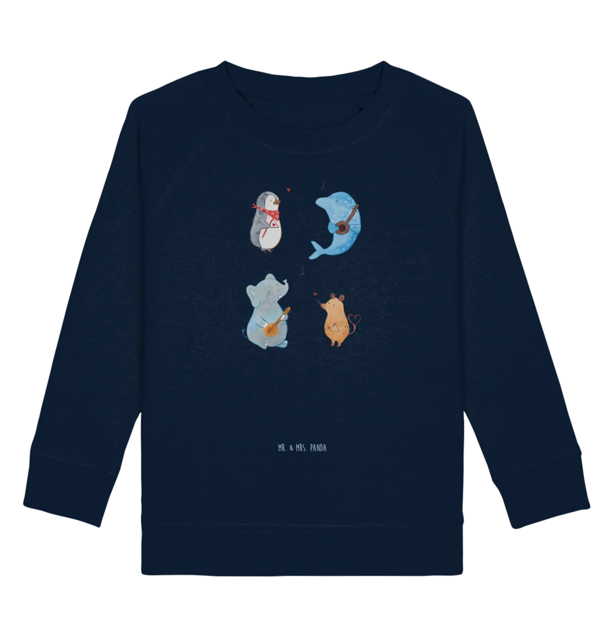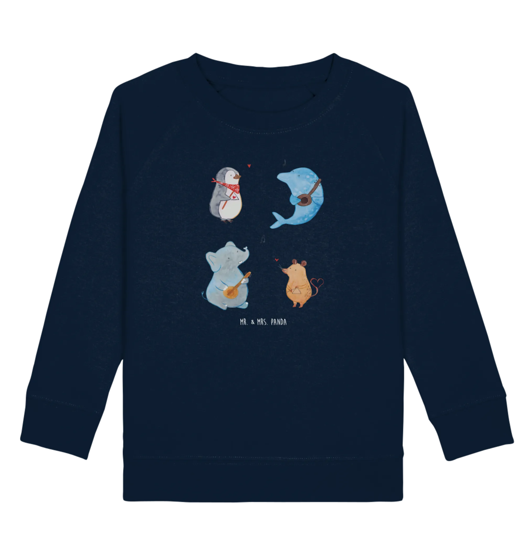 Der Organic Kinder Pullover Big Band von Mr. & Mrs. Panda ist das perfekte Geschenk für kleine Musikliebhaber. Mit seinem einzigartigen Motiv, das einen Pinguin, eine Maus, einen Delfin und einen Elefanten zeigt, die gemeinsam in einer lustigen Big Band musizieren, bringt dieser Pullover nicht nur gute Laune, sondern auch ganz viel Freude.