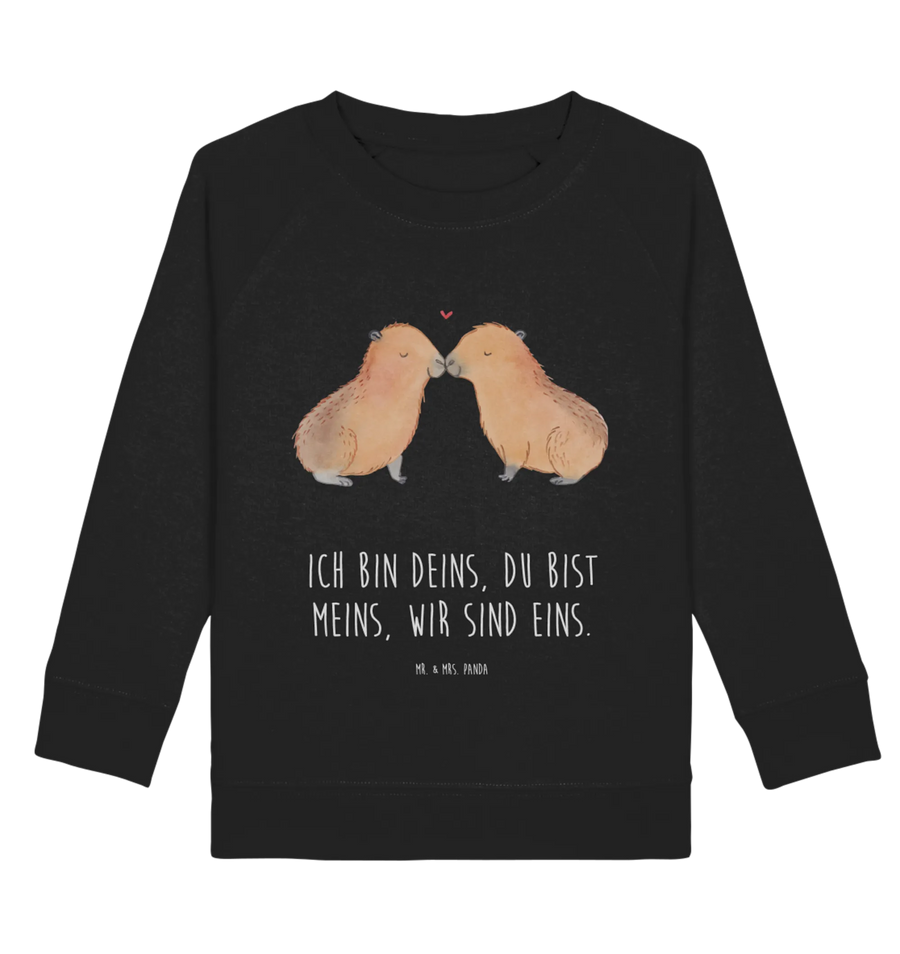Du bist auf der Suche nach dem perfekten Geschenk für Kindern? Der Organic Kinder Pullover mit dem süßen Capybara Liebe Motiv von Mr. & Mrs. Panda ist genau das Richtige! Handgezeichnet und voller Liebe zeigt das Design ein verliebtes Paar von Kuschel-Capybaras, die sich zärtlich küssen. Ihre geschlossenen Augen und das kleine rote Herz, das über ihnen schwebt, symbolisieren die bedingungslose Liebe zwischen den beiden.