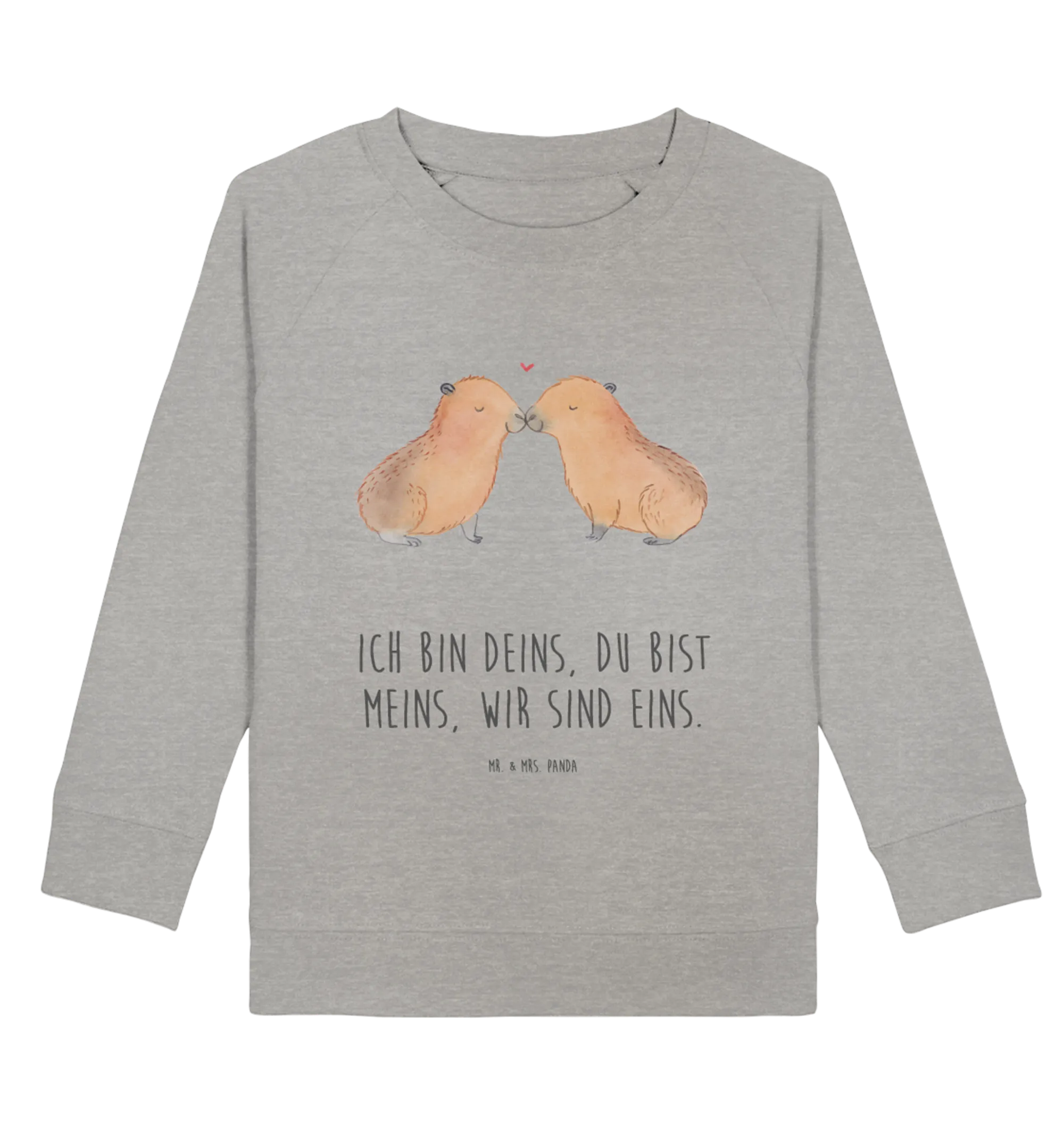 Der Organic Kinder Pullover mit dem süßen Capybara Liebe Motiv aus der Small World Kollektion von Mr. & Mrs. Panda ist das perfekte Geschenk für jeden Anlass. Wenn Du auf der Suche nach einem einzigartigen, romantischen Geschenk für dein Kind oder ein lieben Menschen bist, dann ist dieser Pullover genau das Richtige für Dich!