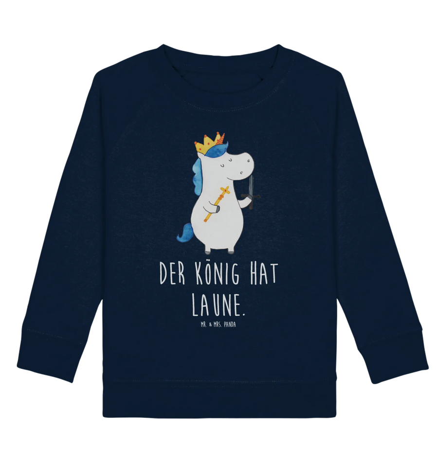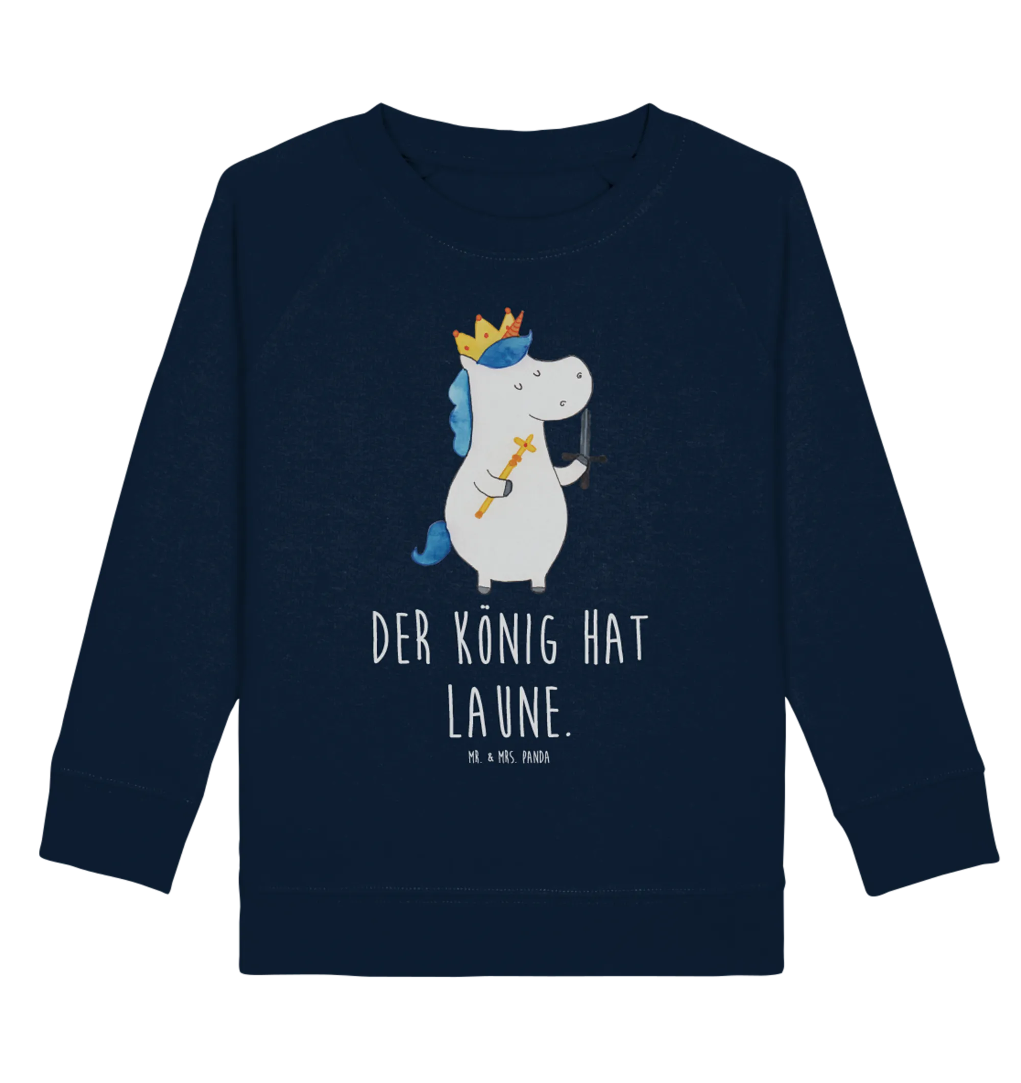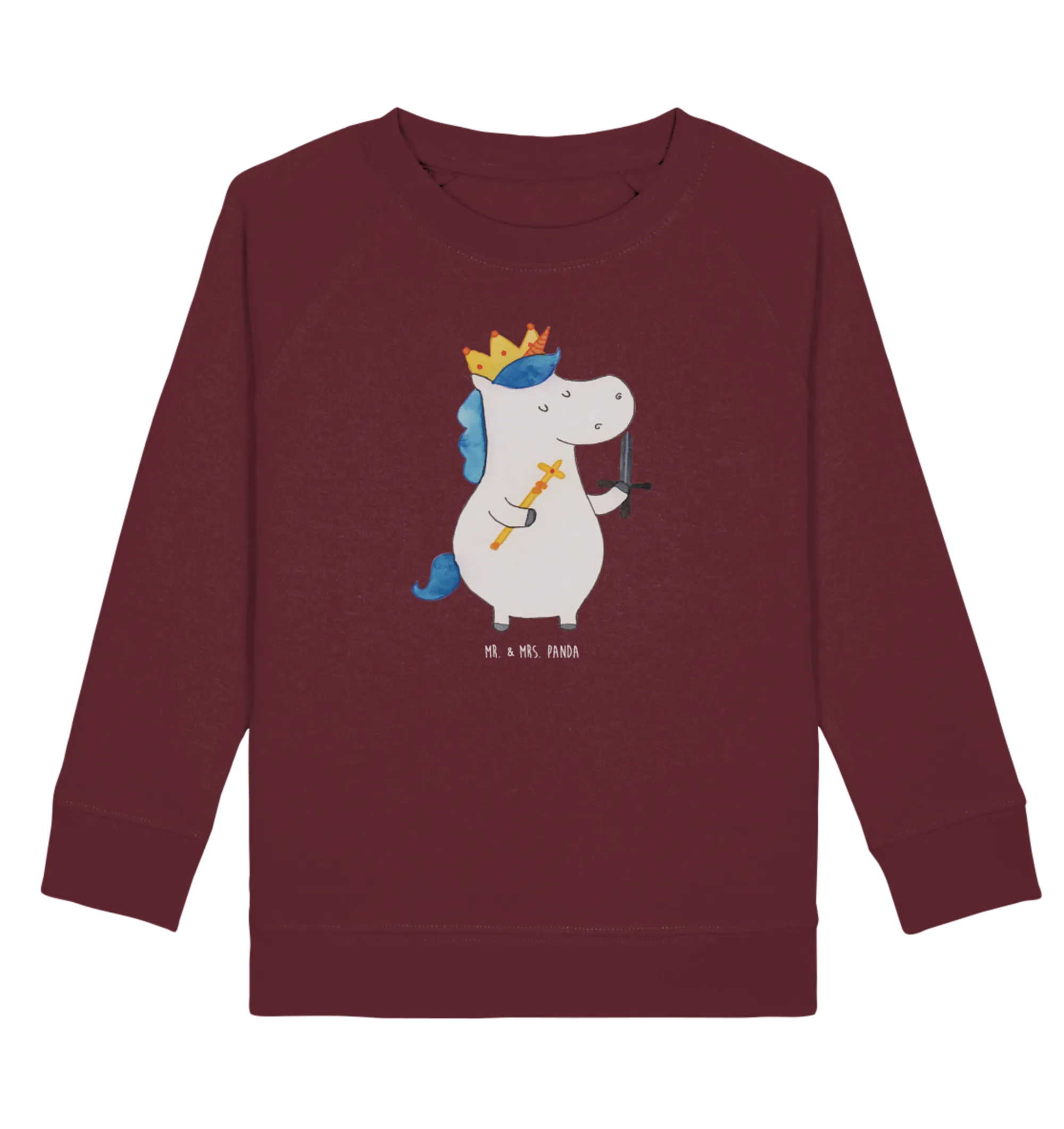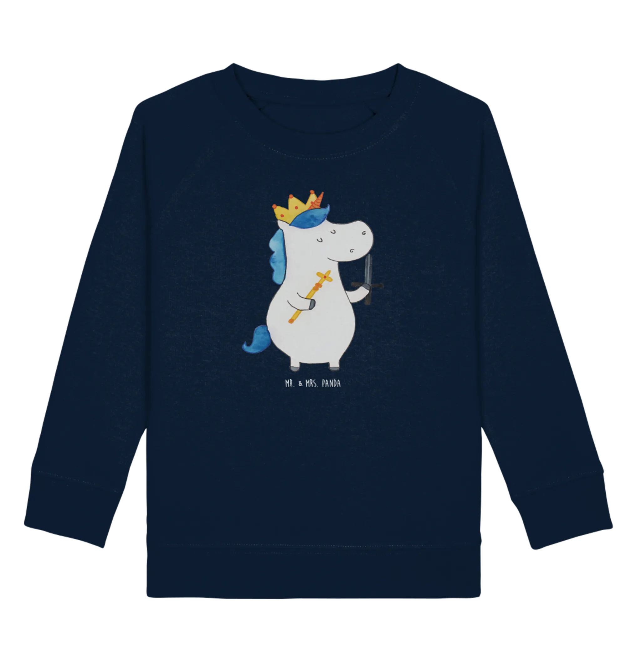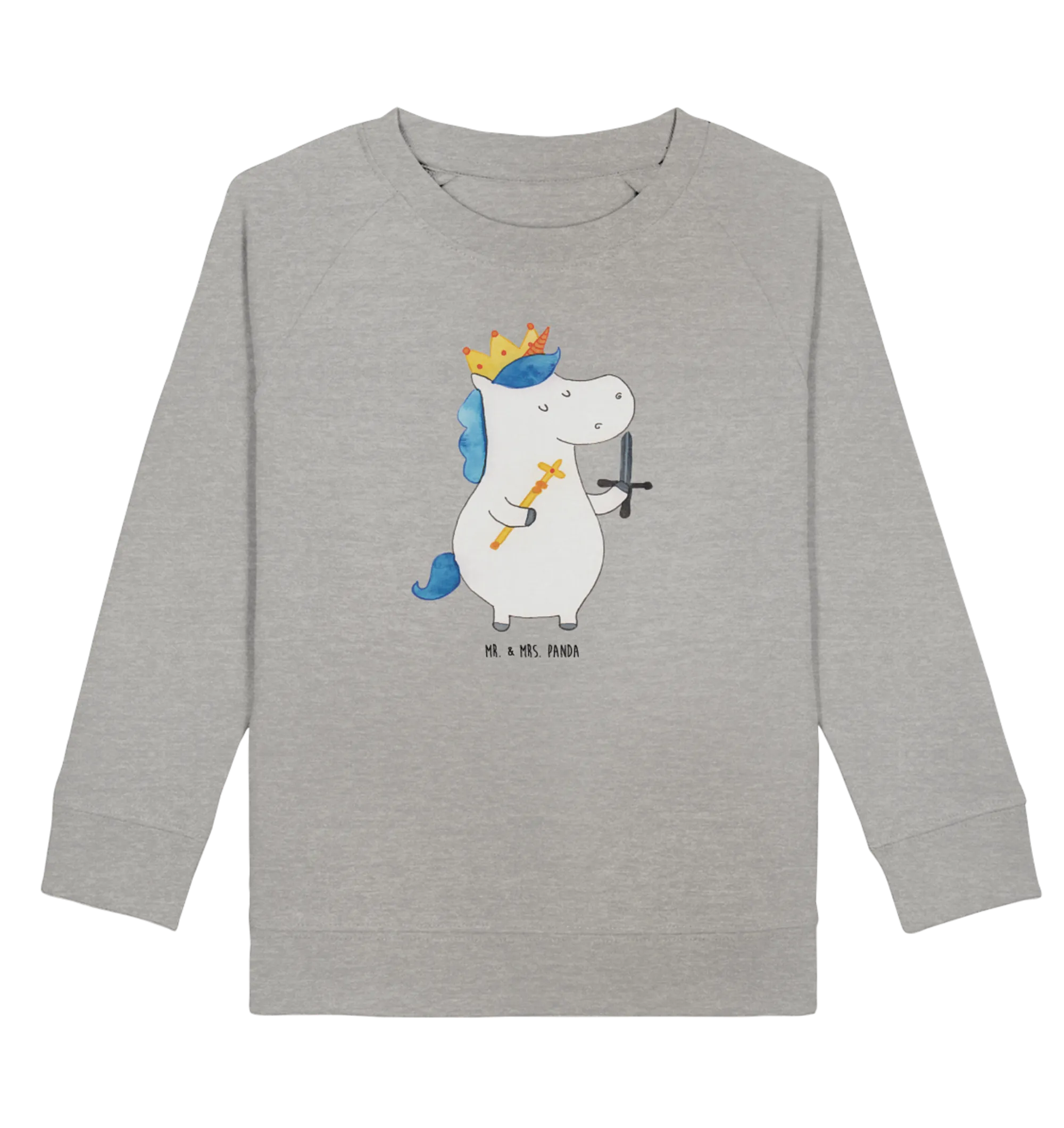 Der Organic Kinder Pullover mit dem zauberhaften Motiv "Einhorn König mit Schwert" aus der Einhorn - Kollektion von Mr. & Mrs. Panda ist das perfekte Geschenk für kleine Abenteuerer und Einhorn-Liebhaber! 🌟
