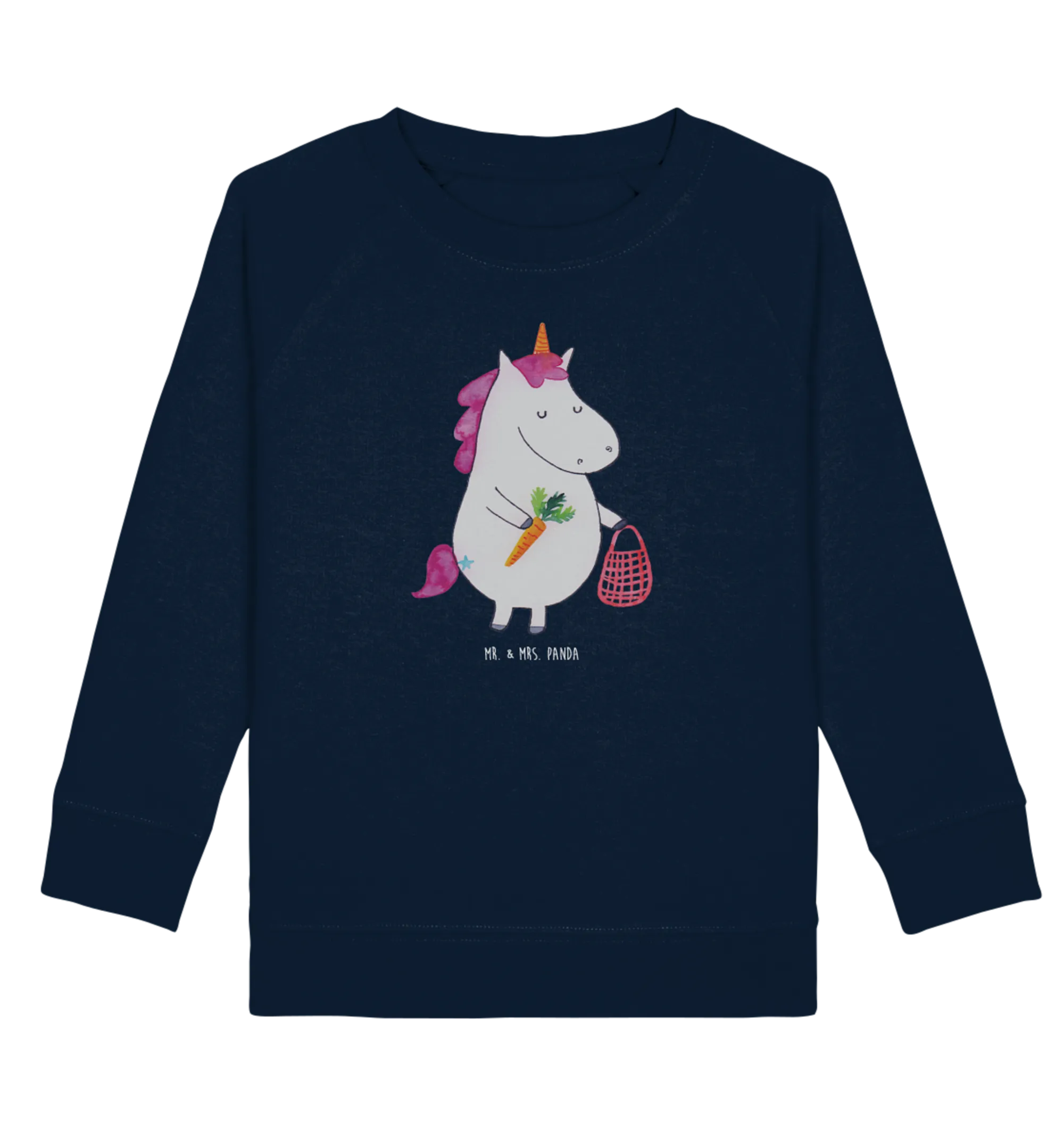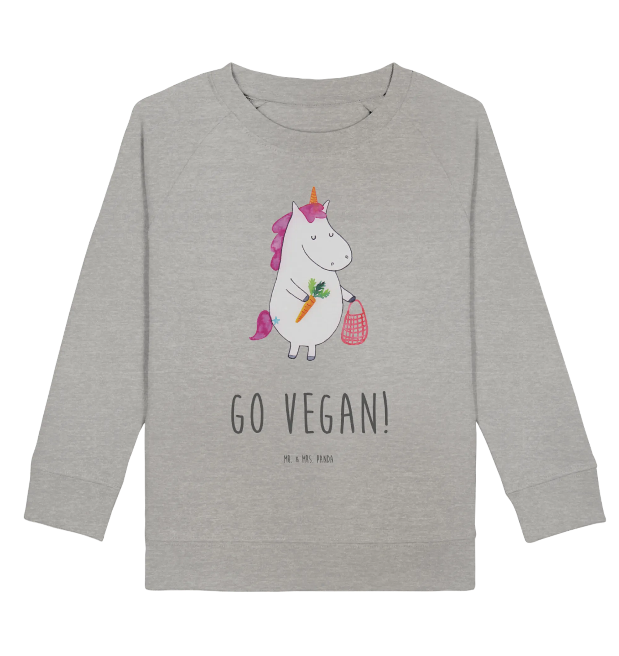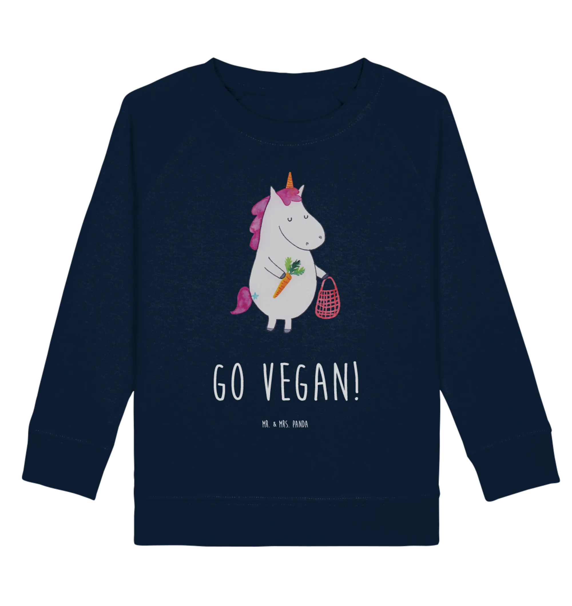Der Organic Kinder Pullover Einhorn Vegan von Mr. & Mrs. Panda ist das perfekte Geschenk für kleine Einhornfans, die gesund leben und leckere vegane Snacks lieben! Mit einem niedlichen Motiv eines Einhorns, das mit seiner Einkaufstasche vegane Lebensmittel kauft, zieht dieser Pullover die Aufmerksamkeit auf sich und sendet gleichzeitig eine wichtige Botschaft: 'GO VEGAN!'.