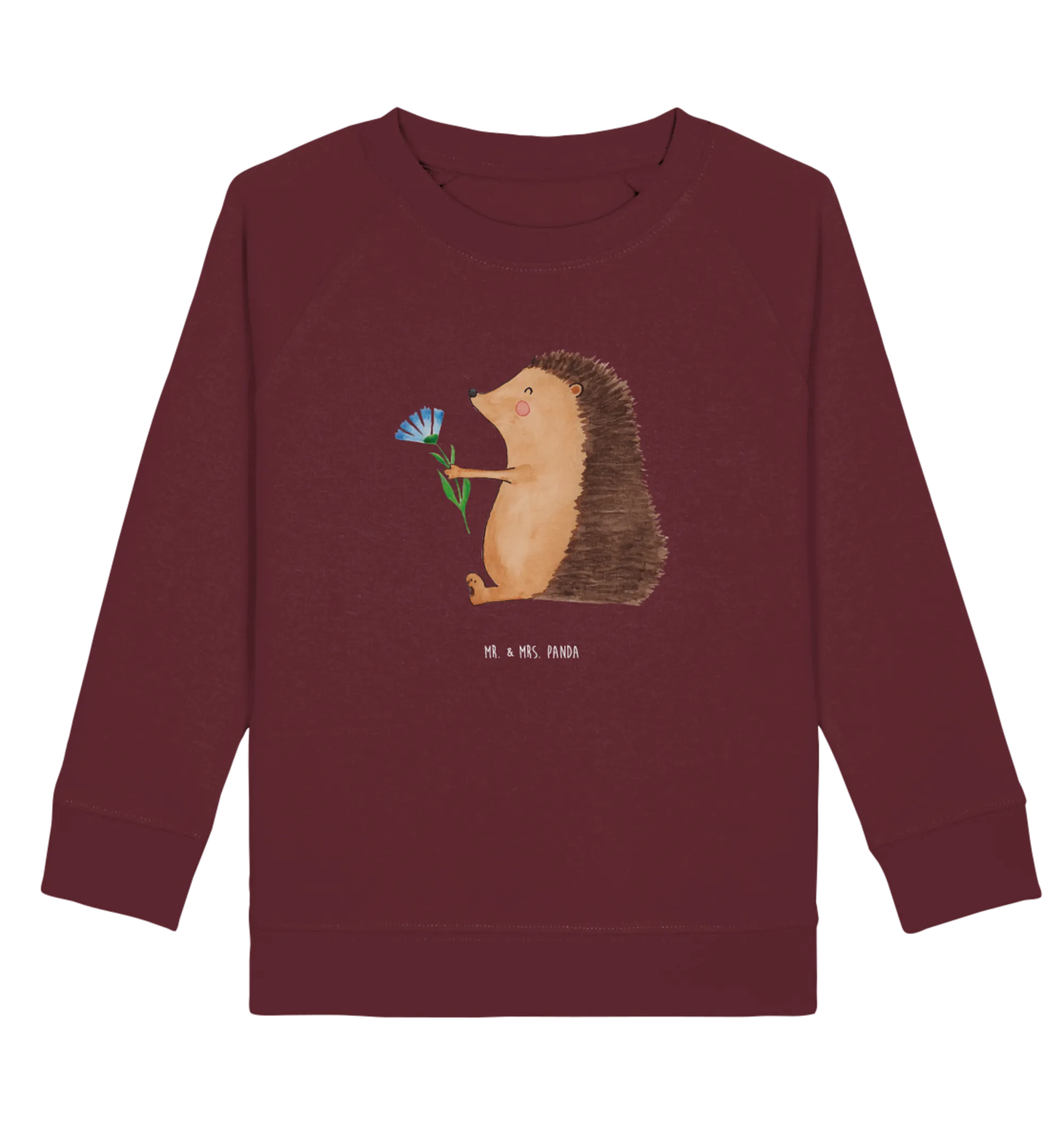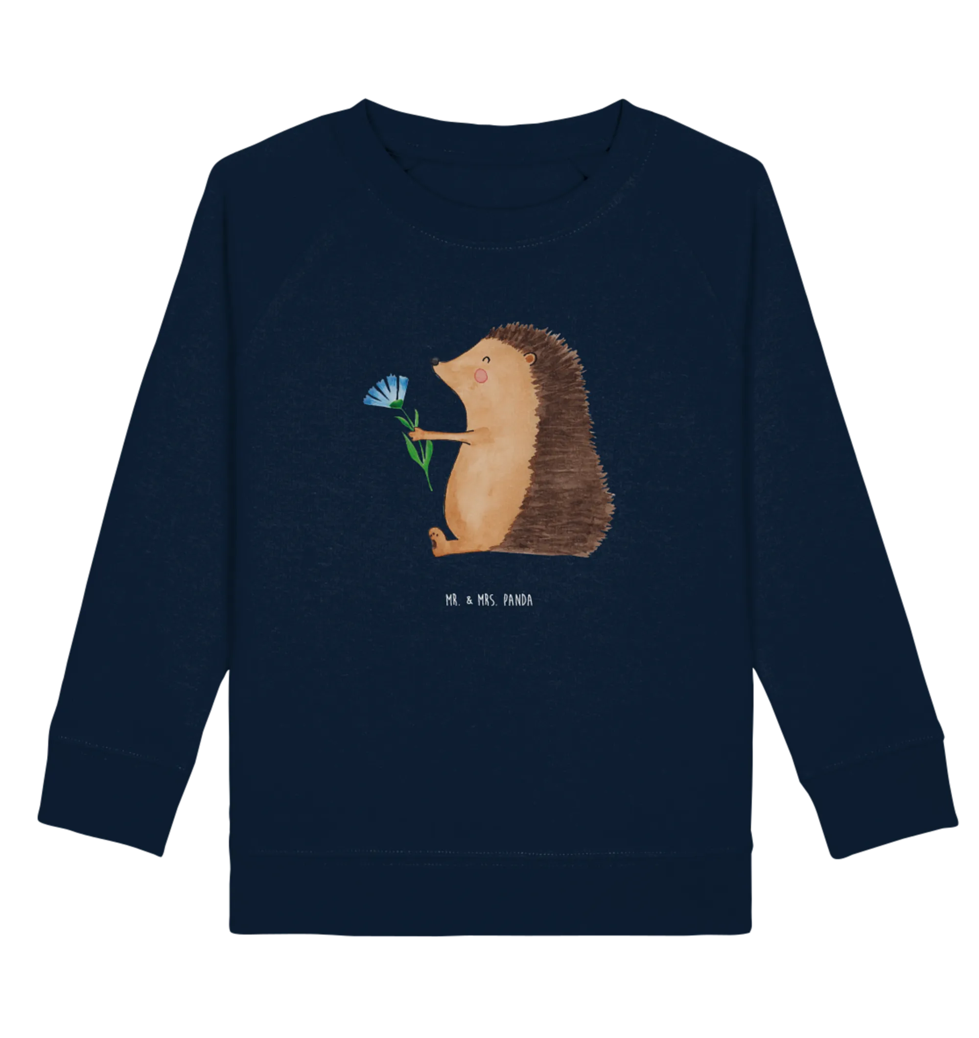 Ein Kinder Pullover aus Bio Baumwolle mit einem niedlichen Igel und einer Blume - perfekt für kleine Abenteurer! Mr. & Mrs. Panda präsentiert dir unseren putzigen Igel mit Blume in der Small World Kollektion.