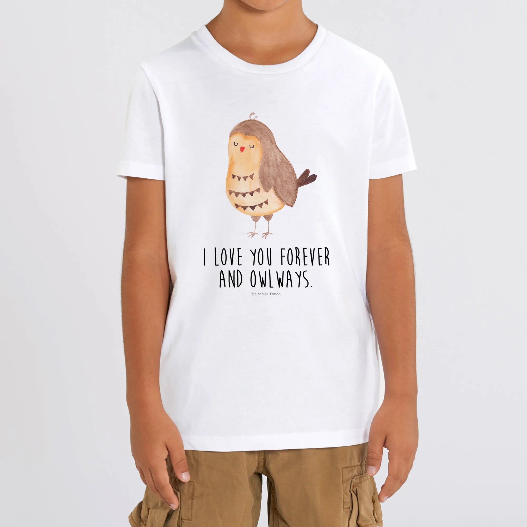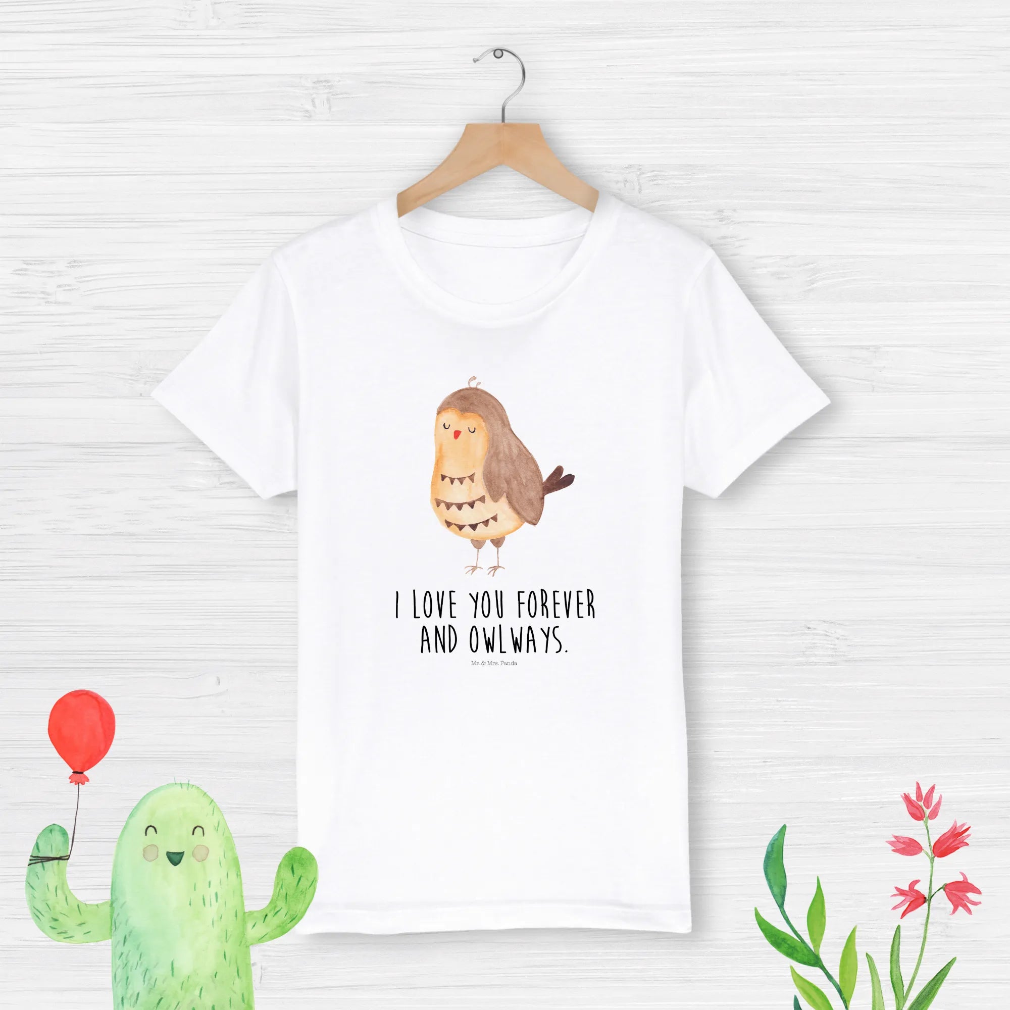 Mit dem Slogan "I love you forever and owlways" – wenn Du das Shirt mit Text wählst – wird die Botschaft noch persönlicher und schöner. Ausgestattet mit diesen positiven Worten und dem liebevollen Design von Mr. & Mrs. Panda wird Dein Kind sicher viel Spaß in diesem T-Shirt haben. Es ist die perfekte Verbindung von Stil und Botschaft und lässt sich prima kombinieren mit Jeans, Shorts oder einem Rock.