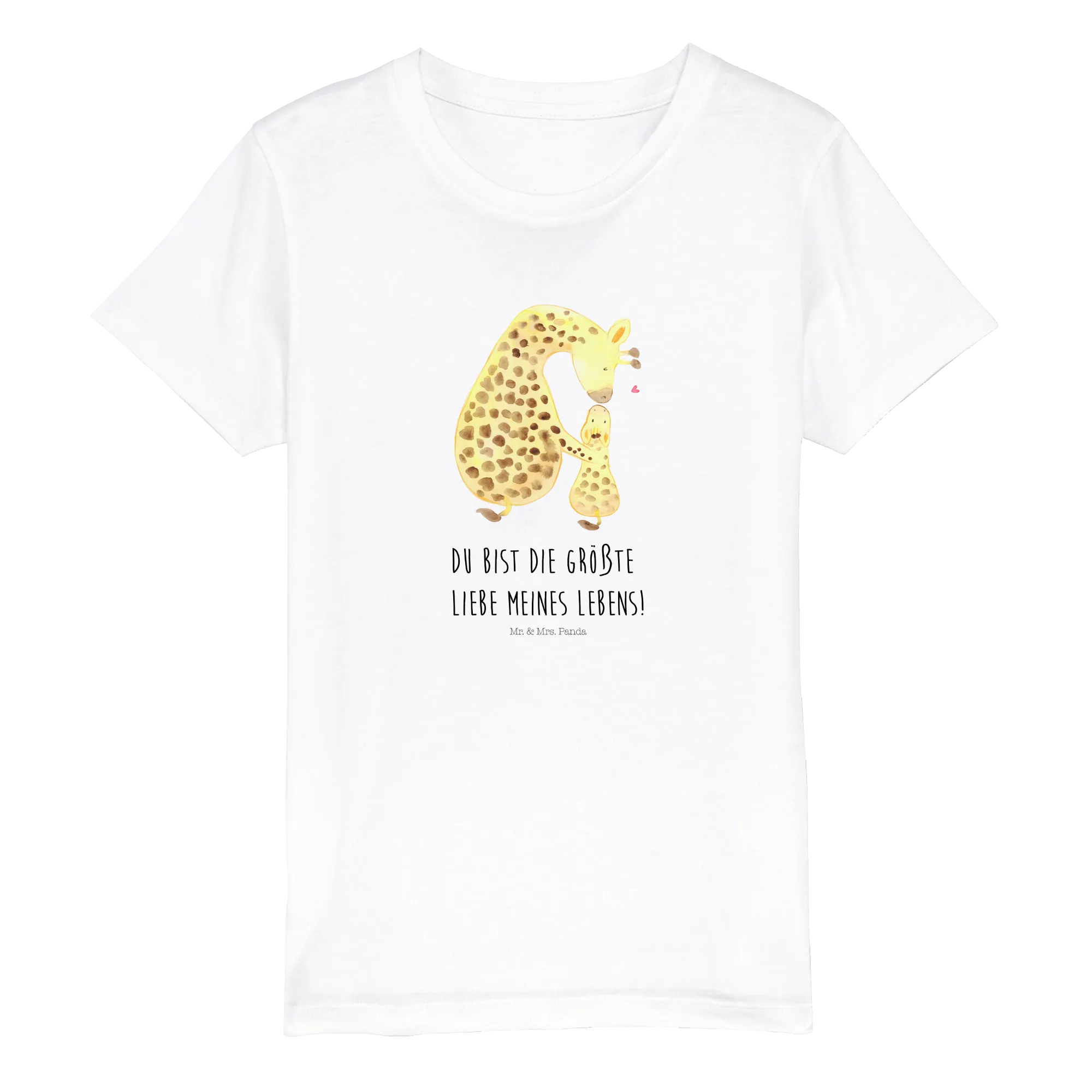 Mit einem süßen Motiv einer Mama Giraffe, die ihr kleines Giraffenbaby zärtlich küsst, zaubert jedes Mal ein Lächeln auf das Gesicht deiner Kleinen. Dieser liebevolle Moment zwischen Mutter und Kind unterstreicht die Botschaft "Du bist die größte Liebe meines Lebens!" und macht dieses Shirt zu einem besonderen Teil der Kindheit.