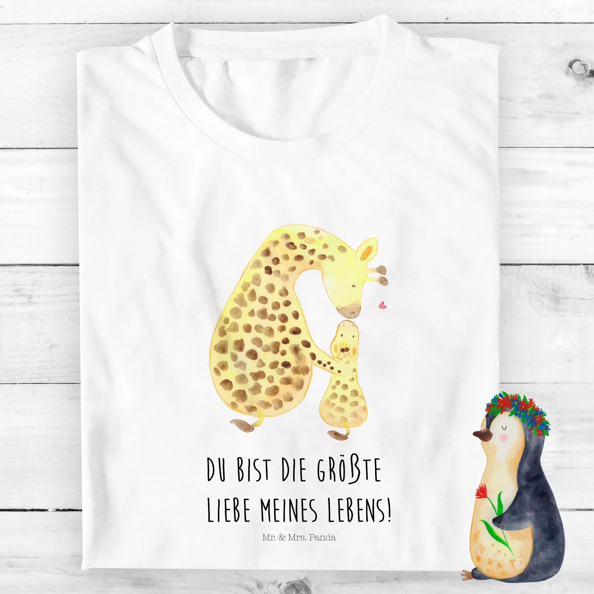 Die Giraffe, die ihr kleines Giraffenkind zärtlich auf den Kopf küsst, symbolisiert die größte Liebe und Zuneigung, die es gibt. Mit einem Design aus der bezaubernden Afrika-Kollektion bringt dieses T-Shirt nicht nur den exotischen Flair des Kontinents näher, sondern vermittelt auch eine wichtige Botschaft: "Du bist die größte Liebe meines Lebens!"