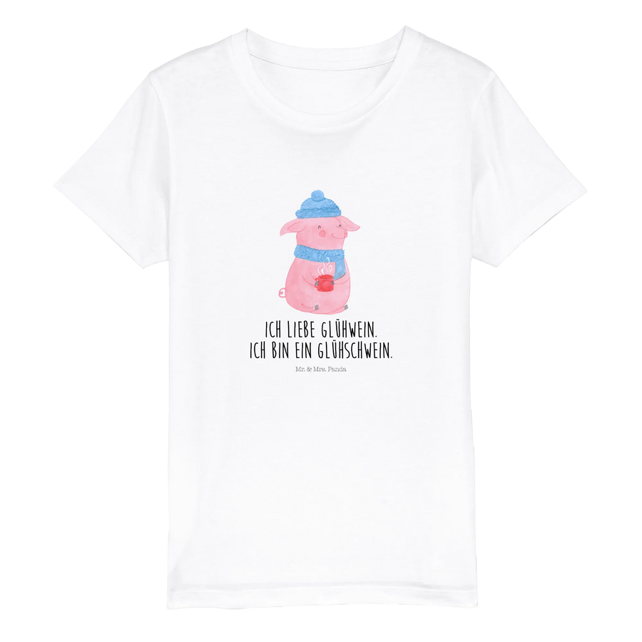 Das süße Motiv zeigt ein rosa Schwein, das in warmer Winterkleidung mit einer dampfenden Tasse hält. Die Aufschrift "Ich liebe Glühwein. Ich bin ein Glühschwein." sorgt für ein fröhliches Lächeln und vermittelt sofort die gemütliche Atmosphäre des Weihnachtsmarktes. Hergestellt aus 100 % Baumwolle in Bio-Qualität, ist das T-Shirt nicht nur ein Hingucker, sondern auch angenehm zu tragen. Mit seiner normalen Passform und dem Rundhalsausschnitt ist es perfekt für aktive Kids geeignet.
