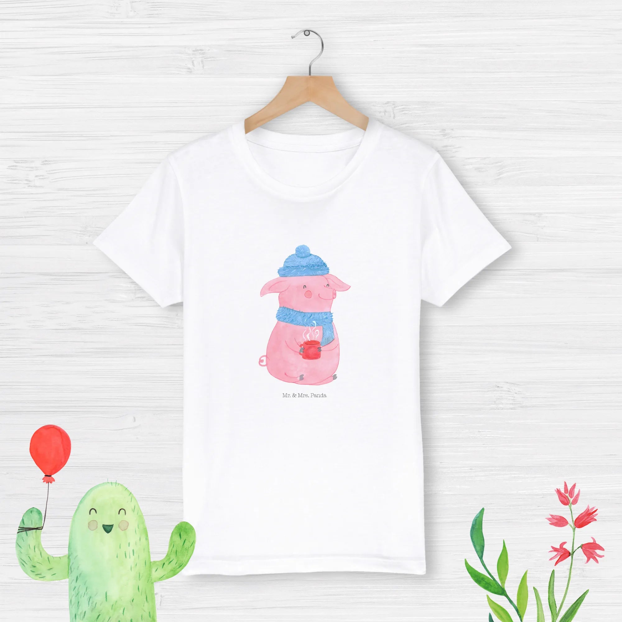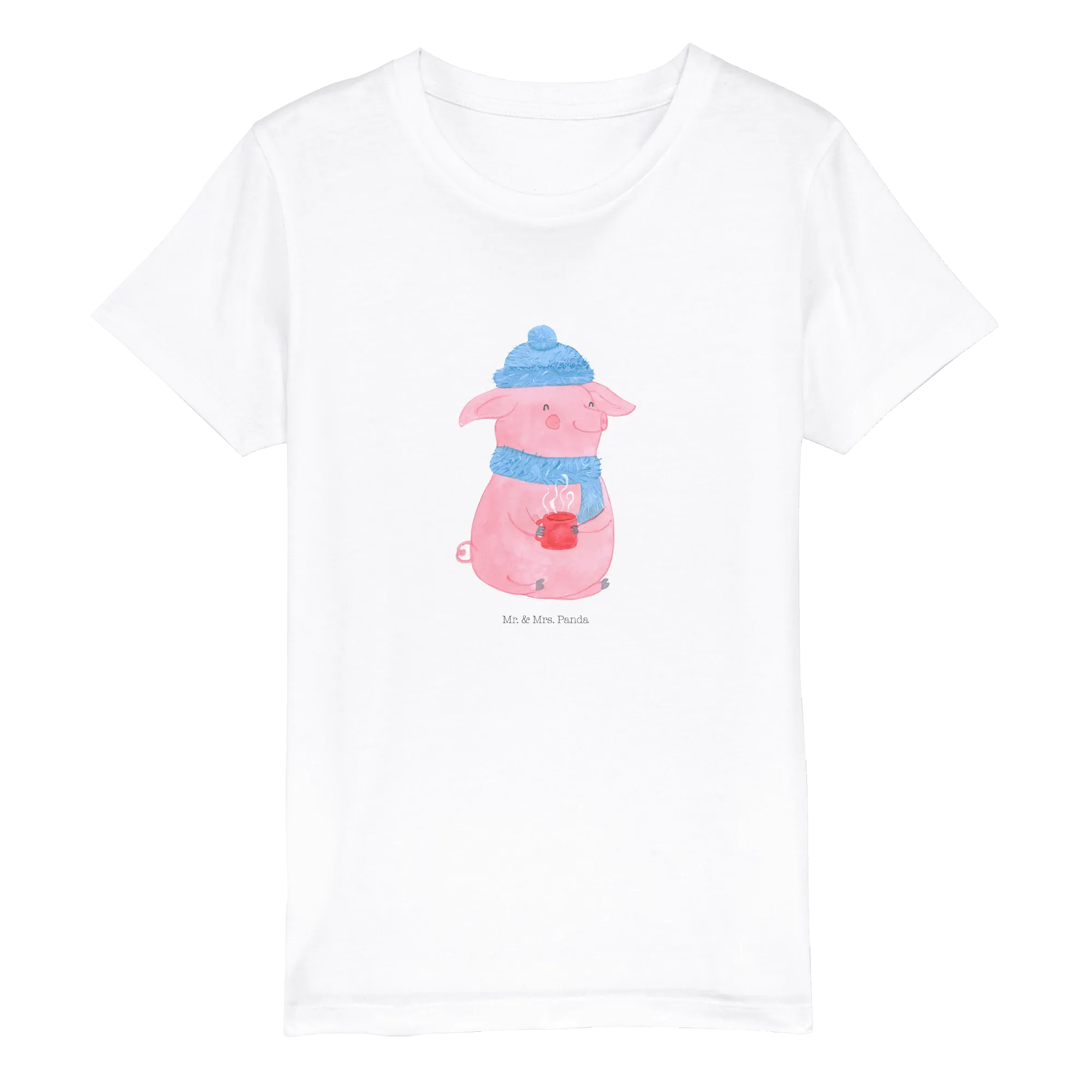 Das wunderschöne Organic Kinder T-Shirt "Glühschwein" aus der Winter Kollektion von Mr. & Mrs. Panda ist das perfekte Geschenk für kleine Kinder, die die Winter- und Weihnachtszeit lieben! Mit einem fröhlichen Motive eines rosa Schweins, das sich in warme Winterkleidung gekleidet hat, einschließlich einer blauen Mütze und einem passenden Schal, bringt es die gemütliche Atmosphäre des Weihnachtsmarktes direkt in den Kleiderschrank.