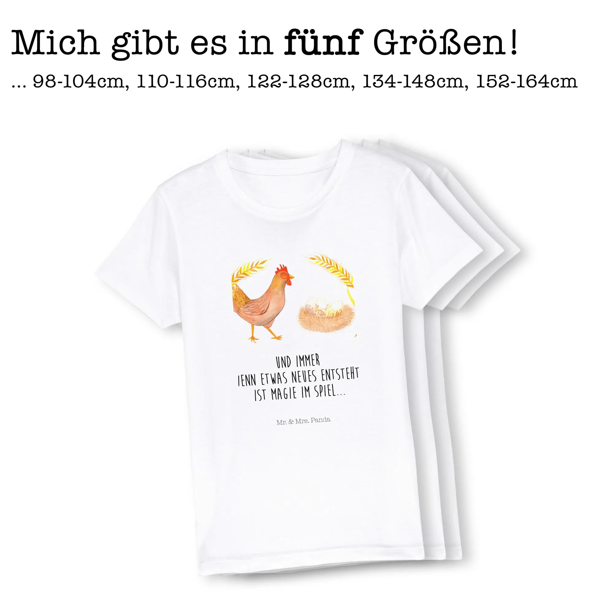 Der normale Schnitt und der klassische Rundhalsausschnitt bieten maximalen Komfort für abenteuerlustige Kinder, die gerne draußen spielen und die Natur entdecken. Mit dem Motiv von Berta Henne, die stolz über den Hof stolziert, bringen wir nicht nur Farbe ins Spiel, sondern auch eine positive Botschaft. Das T-Shirt trägt den Spruch: "Und immer, wenn etwas Neues entsteht, ist Magie im Spiel." Dies ist nicht nur ein süßer Spruch, sondern auch eine tolle Unterstützung für Kinder, die in der aufregenden Phase des Heranwachsens stehen.