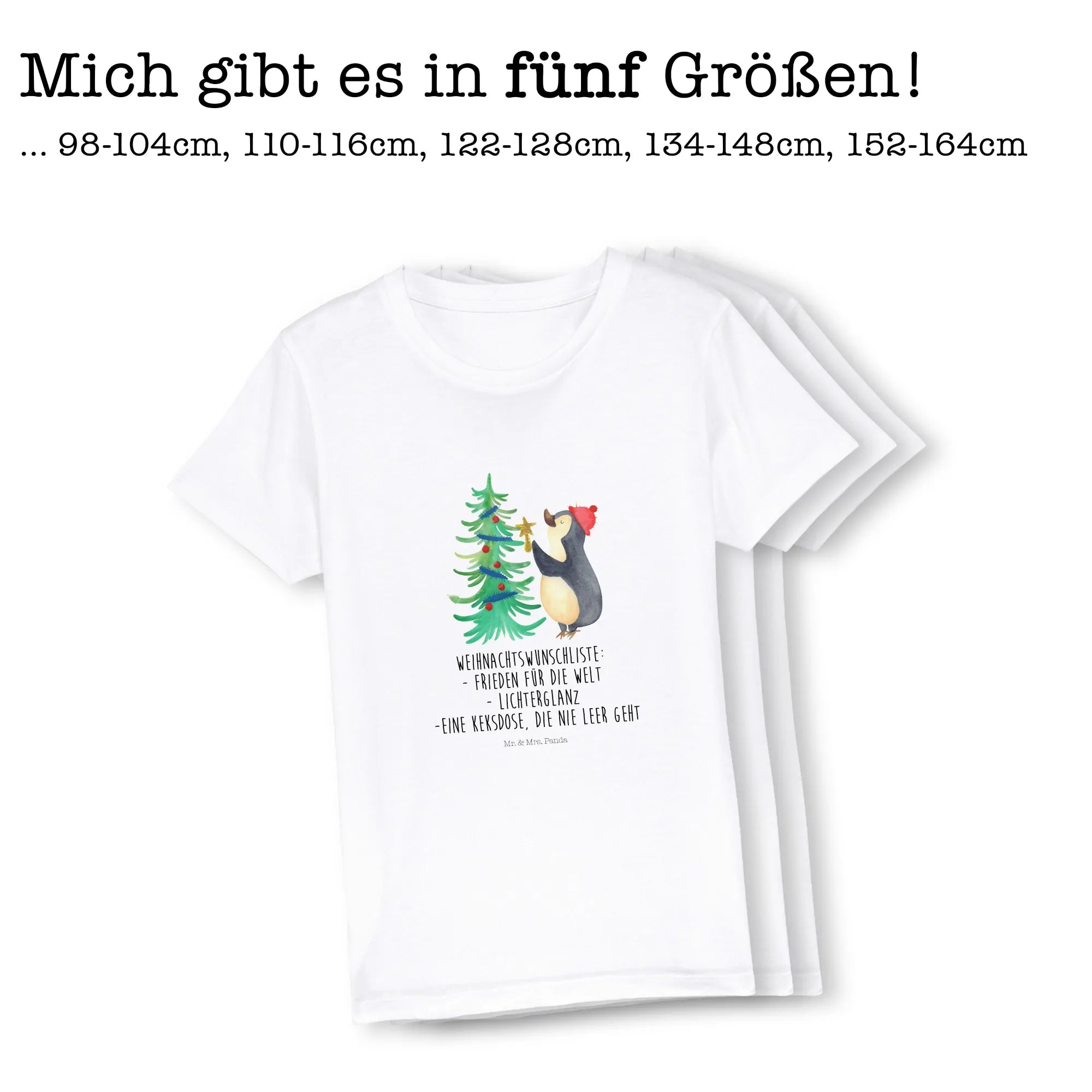 Verschenke Freude in Form von bekleidenden Erinnerungen und wecke die Vorfreude auf einen wunderbaren Winter voller Abenteuer. Das süße Motiv 'Pinguin Weihnachtsbaum' ist nicht nur ein echter Hingucker, sondern auch eine tolle Möglichkeit, die Weihnachtswünsche schon im Voraus zu präsentieren. Auf der Vorderseite des Shirts prangt der Spruch: 'Weihnachtswunschliste: Frieden für die Welt, Lichterglanz und eine Keksdose, die niemals leer geht.' Dieser liebevolle Spruch wird jede Dunkelheit erhellen und alle daran erinnern, was zu dieser zauberhaften Zeit zählt.