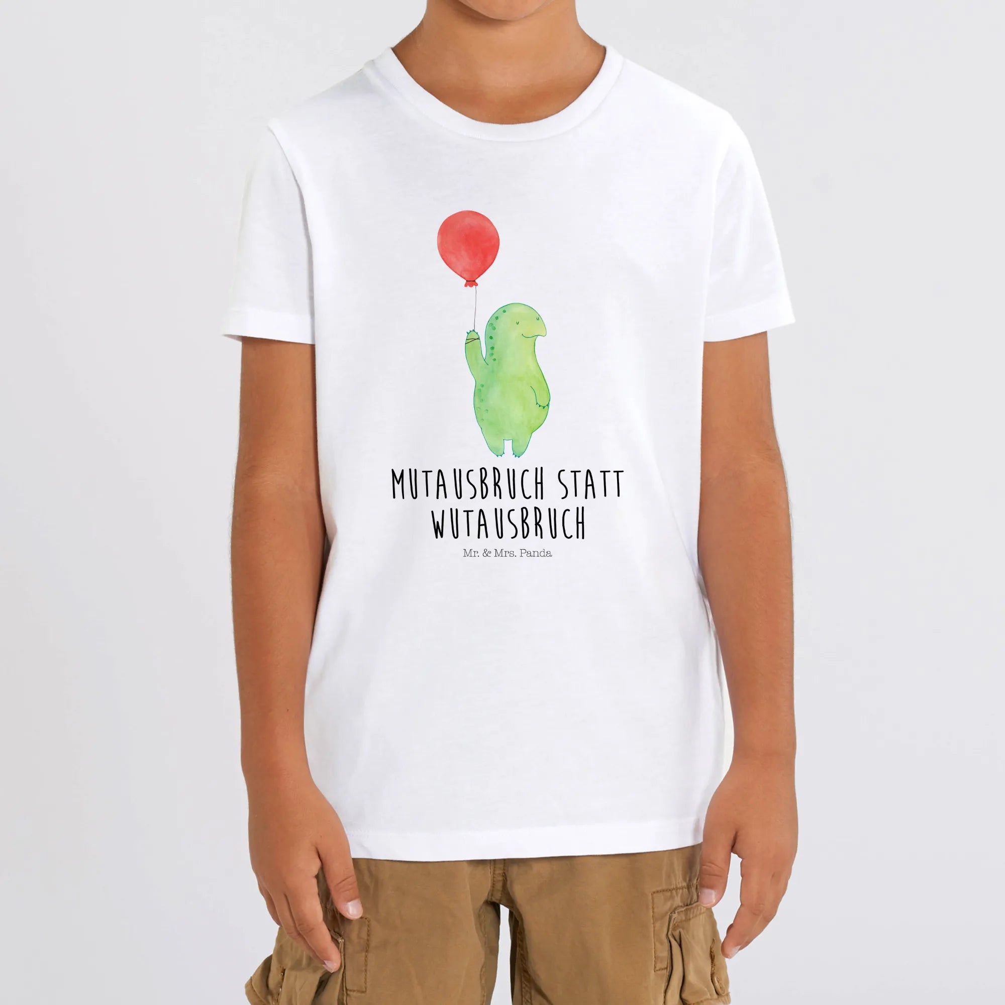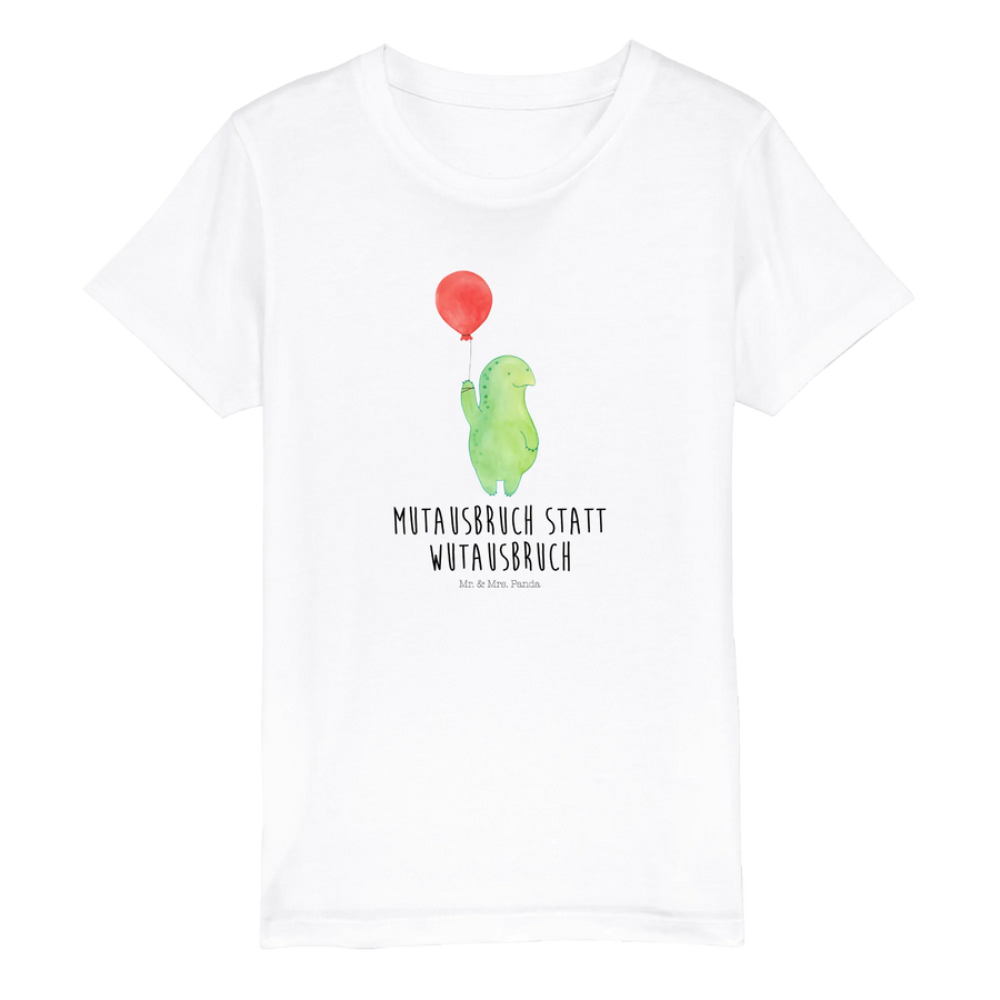 Die putzige Schildkröte schwebt an einem bunten Luftballon und bringt jedem Kind nicht nur ein Lächeln ins Gesicht, sondern auch eine Botschaft voller Freude und Freiheit. Das T-Shirt trägt den motivierenden Spruch 'Mutausbruch statt Wutausbruch', der Kinder ermutigen soll, ihre Emotionen positiv auszudrücken und Freude am Leben zu finden.