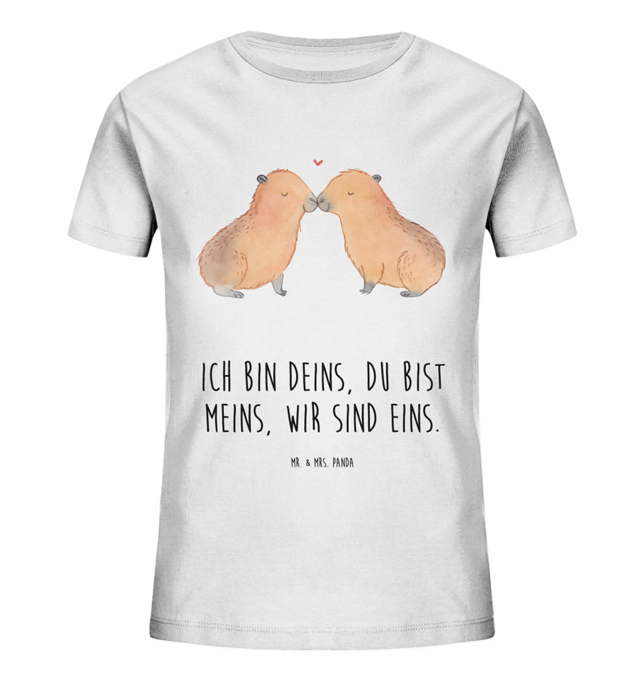 Verschenke Freude und gute Laune mit diesem tollen Shirt aus der beliebten Small World Kollektion von Mr. & Mrs. Panda, das perfekt die bunte und vielfältige Wesenheit unserer Tierwelt widerspiegelt. Egal, ob für Deine eigene Kleine, als Geschenk für die beste Freundin oder für den Neffen – das Capybara Liebe T-Shirt ist eine großartige Wahl für jeden Tierfreund und eine wunderbare Möglichkeit, Liebe und Zuneigung auszudrücken.