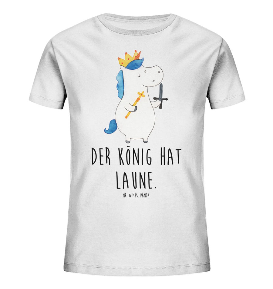 Entdecke das zauberhafte Organic Kinder T-Shirt "Einhorn König mit Schwert" aus der exklusiven Einhorn-Kollektion von Mr. & Mrs. Panda! Dieses spezielle T-Shirt ist wie geschaffen für kleine Abenteurer und Einhornliebhaber!