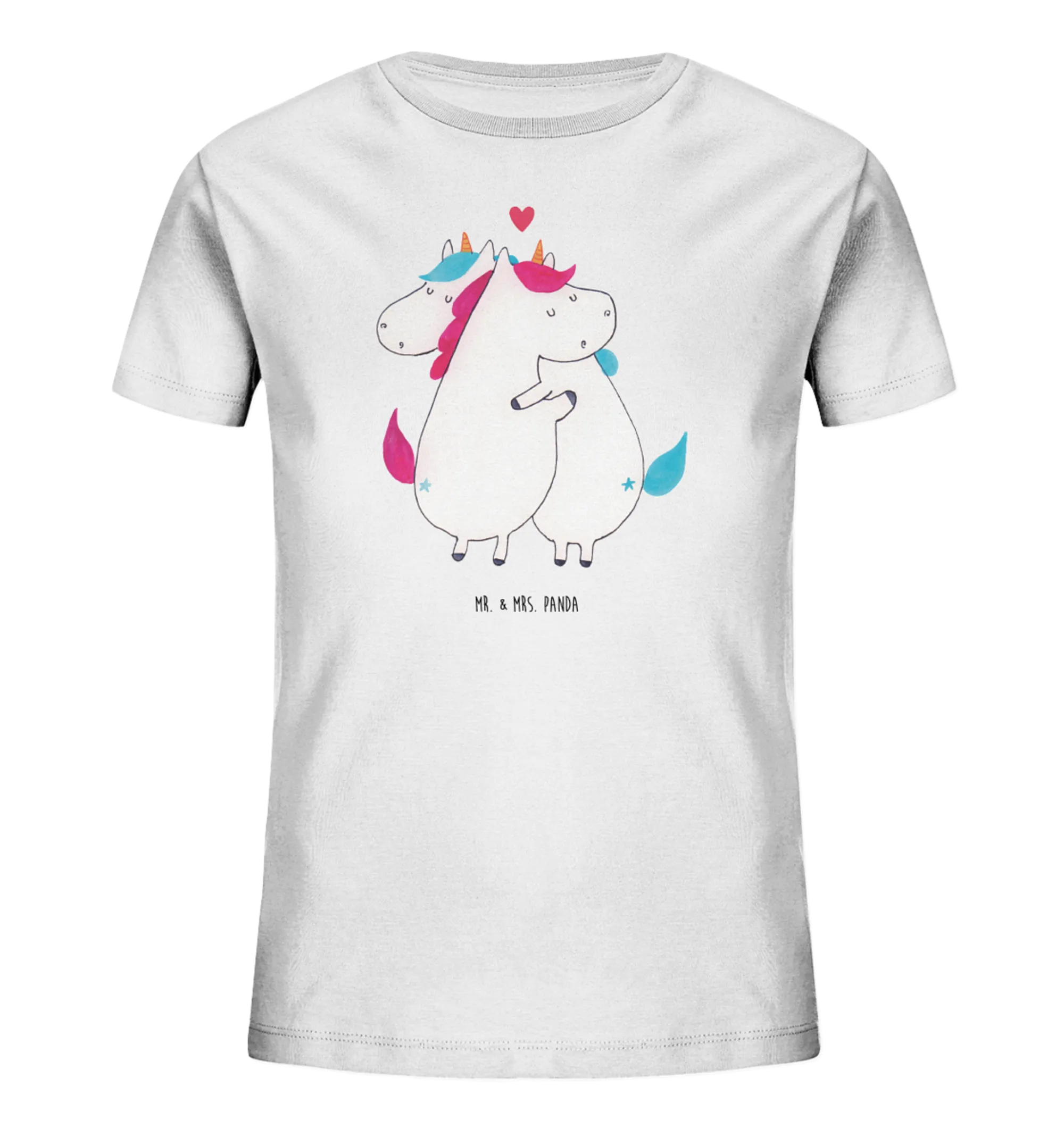 Dieses wunderschöne Kinder T-Shirt von Mr. & Mrs. Panda ist das perfekte Geschenk für alle kleinen Einhorn-Liebhaber! Mit dem zauberhaften Motiv von zwei kuschelnden Einhörnern, die sich gegenseitig im Arm halten, strahlt es pure Liebe und Freundschaft aus.