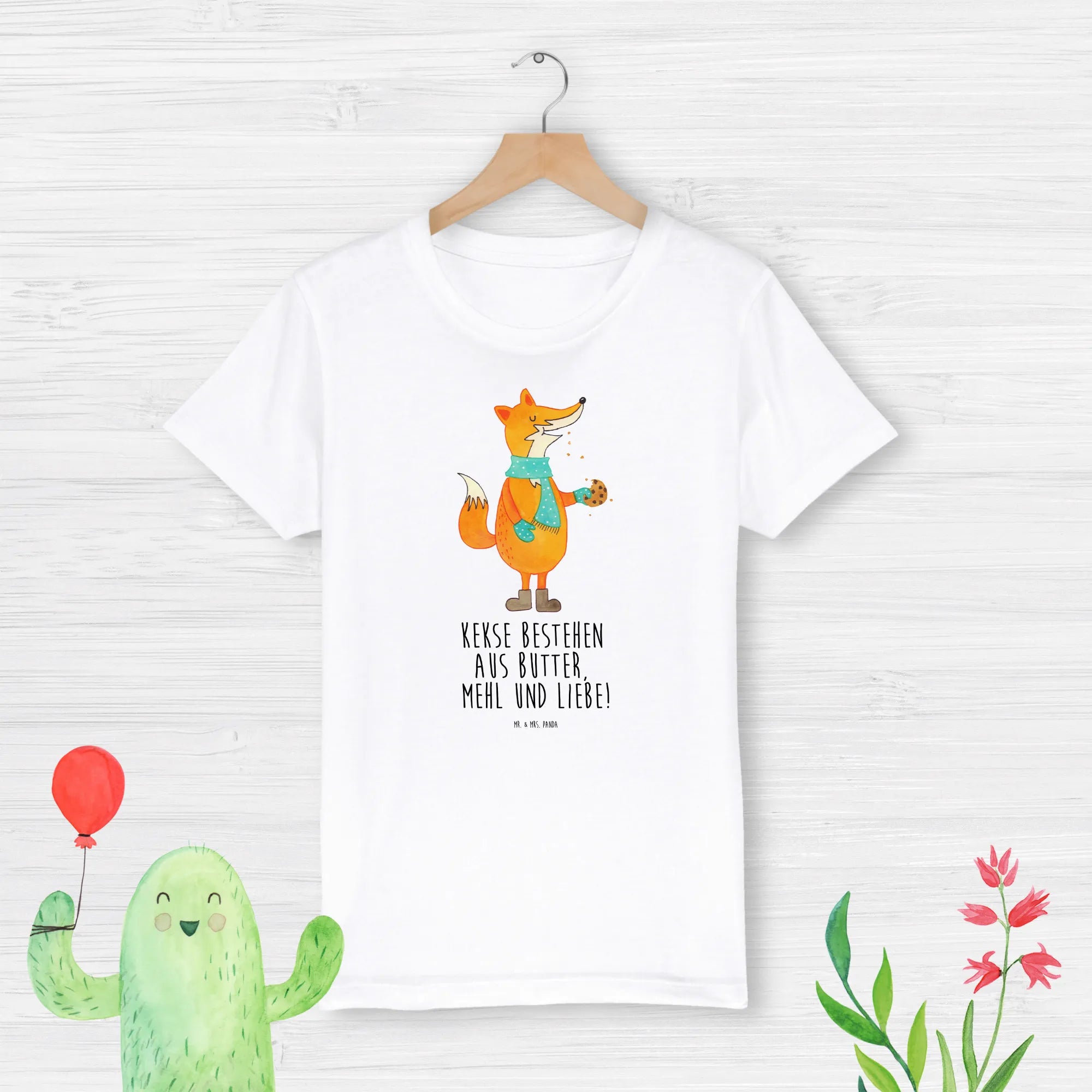 Füchse sind nicht nur charmante Tiere, sondern auch Symbole für cleveres Verhalten. Mit der Fuchs Kollektion von Mr. & Mrs. Panda bringen wir die Lebensfreude und Intelligenz dieser wunderschönen Waldbewohner in Deinen Alltag. Der süße Spruch "Kekse bestehen aus Butter, Mehl und Liebe!" sorgt für ein Lächeln, nicht nur bei den Kleinen, sondern auch bei Mamas und Papas, die das Shirt mit Stolz anziehen.