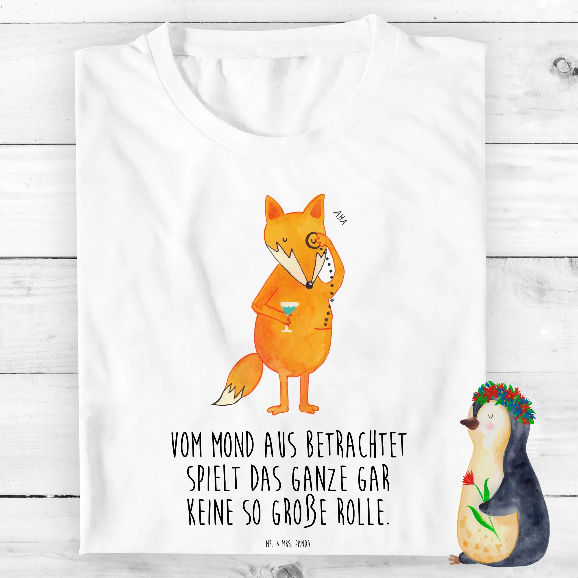 Es wird aus 100% Baumwolle in Bio-Qualität hergestellt, ist besonders weich und angenehm zu tragen. Der niedliche Fuchs in eleganter Monokel-Pose zieht garantiert alle Blicke auf sich. Kinder lieben die lebendigen Farben und das liebevoll gestaltete Design, das mit viel Hingabe von Mrs. Panda entworfen wurde. Der Spruch "Vom Mond aus betrachtet spielt das Ganze gar keine so große Rolle" gibt dem Shirt eine inspirierende Note, die zum Nachdenken anregt und gleichzeitig Fröhlichkeit verbreitet.