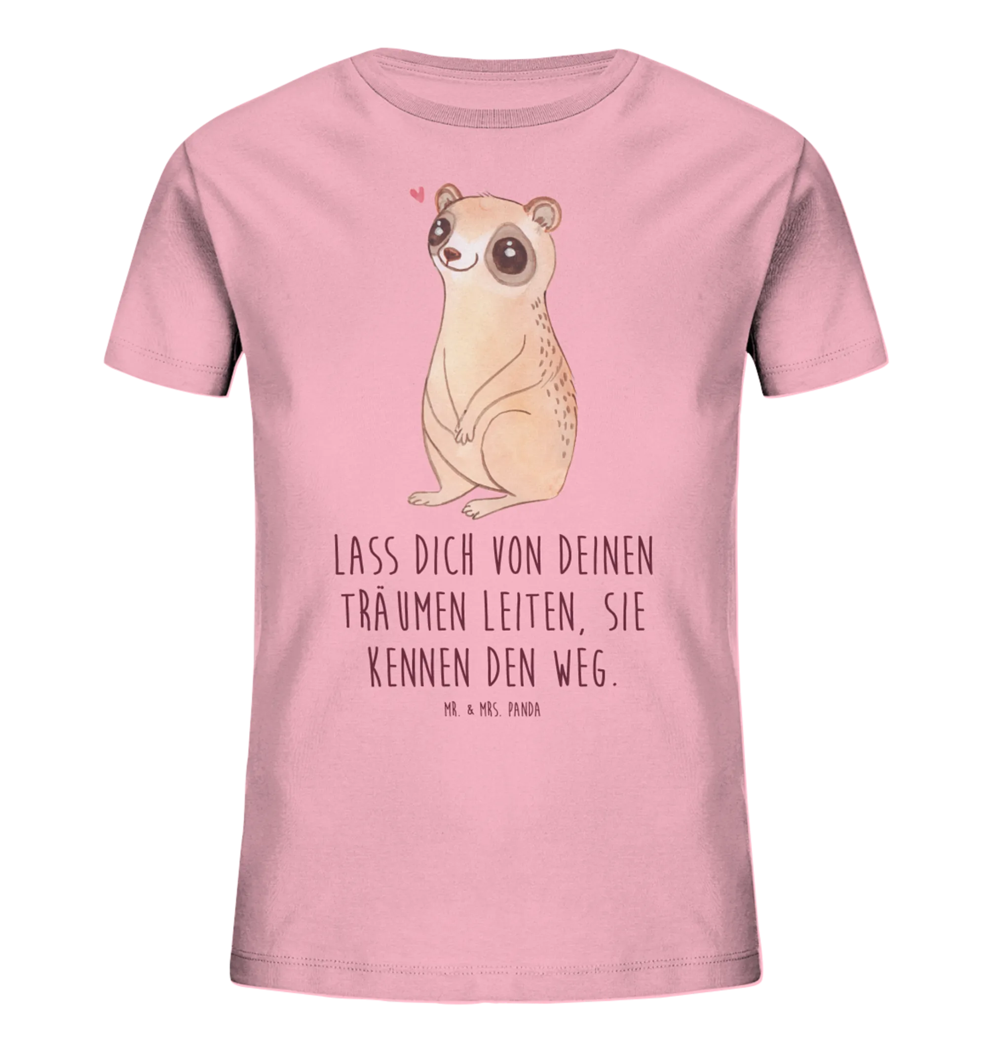 Die 'Small World' Kollektion von Mr. & Mrs. Panda fasziniert durch ihre Vielfalt und die liebevoll handgezeichneten Motive. Ob Bienen, Vögel oder unsere knuffigen Plumploris – hier finden sich die besten Freunde unserer magischen Tierwelt zusammen. Ideal für alle kleinen Tierliebhaber und Fans von fröhlichen Designs! Das T-Shirt kann sowohl in der Freizeit, beim Spielen im Park, oder bei einem gemütlichen Familienausflug getragen werden. Die Kombination aus einem niedlichen Motiv und der Botschaft „Lass dich von deinen Träumen leiten, sie kennen den Weg“ regt zum Nachdenken und Träumen an.