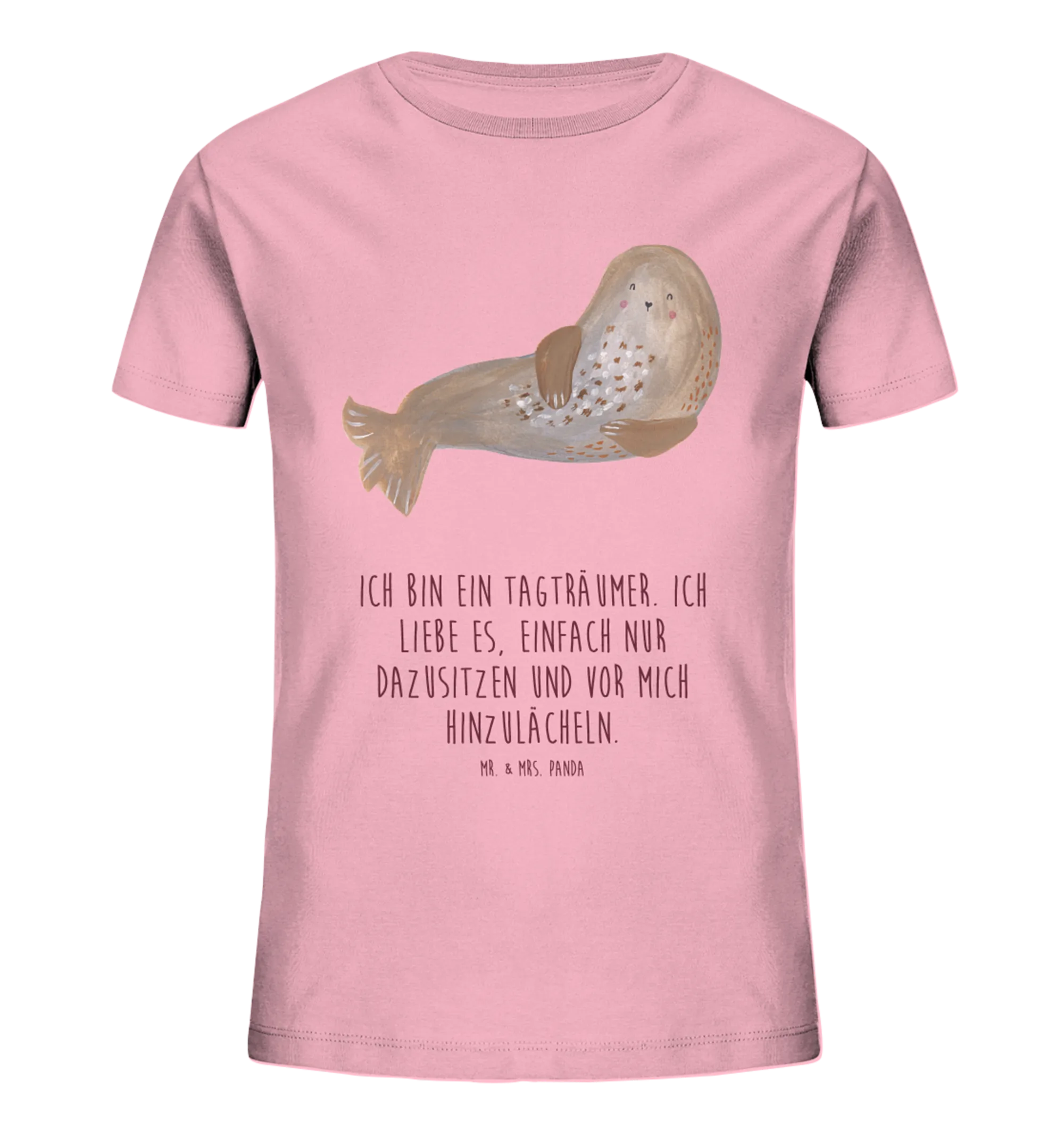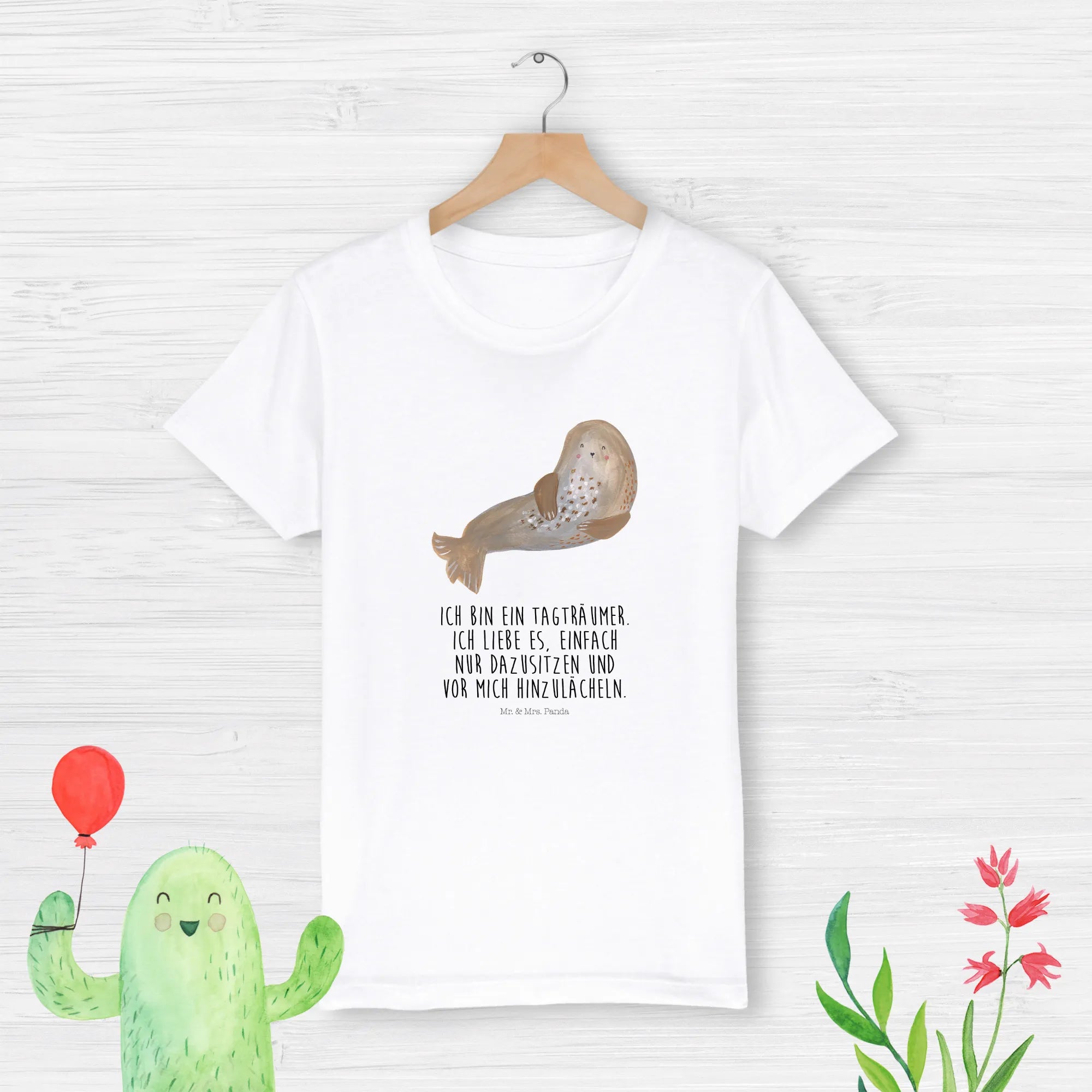 Schenke Freude und gute Laune mit diesem tollen Kinder T-Shirt von Mr. & Mrs. Panda und lass dein Kind zur süßesten Robbe am Strand werden! Mit dem Slogan "Ich bin ein Tagträumer. Ich liebe es, einfach nur dazusitzen und vor mich hinzulächeln." sorgt dieses Shirt für noch mehr Charme.