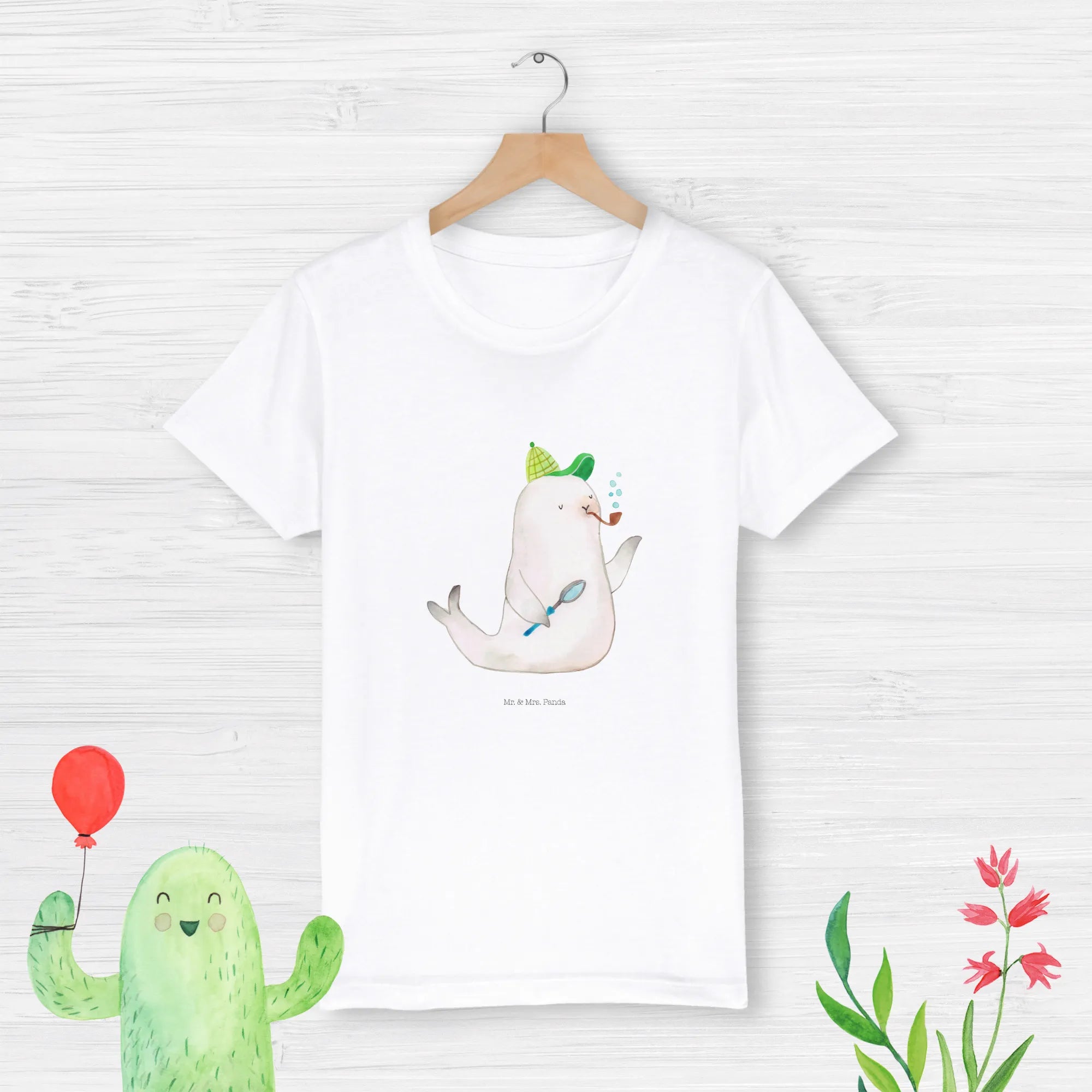 Das Organic Kinder T-Shirt mit dem niedlichen Motiv "Robbe Sherlock" aus der Small World Kollektion von Mr. & Mrs. Panda ist der perfekte Begleiter für kleine Entdeckerinnen und Entdecker!