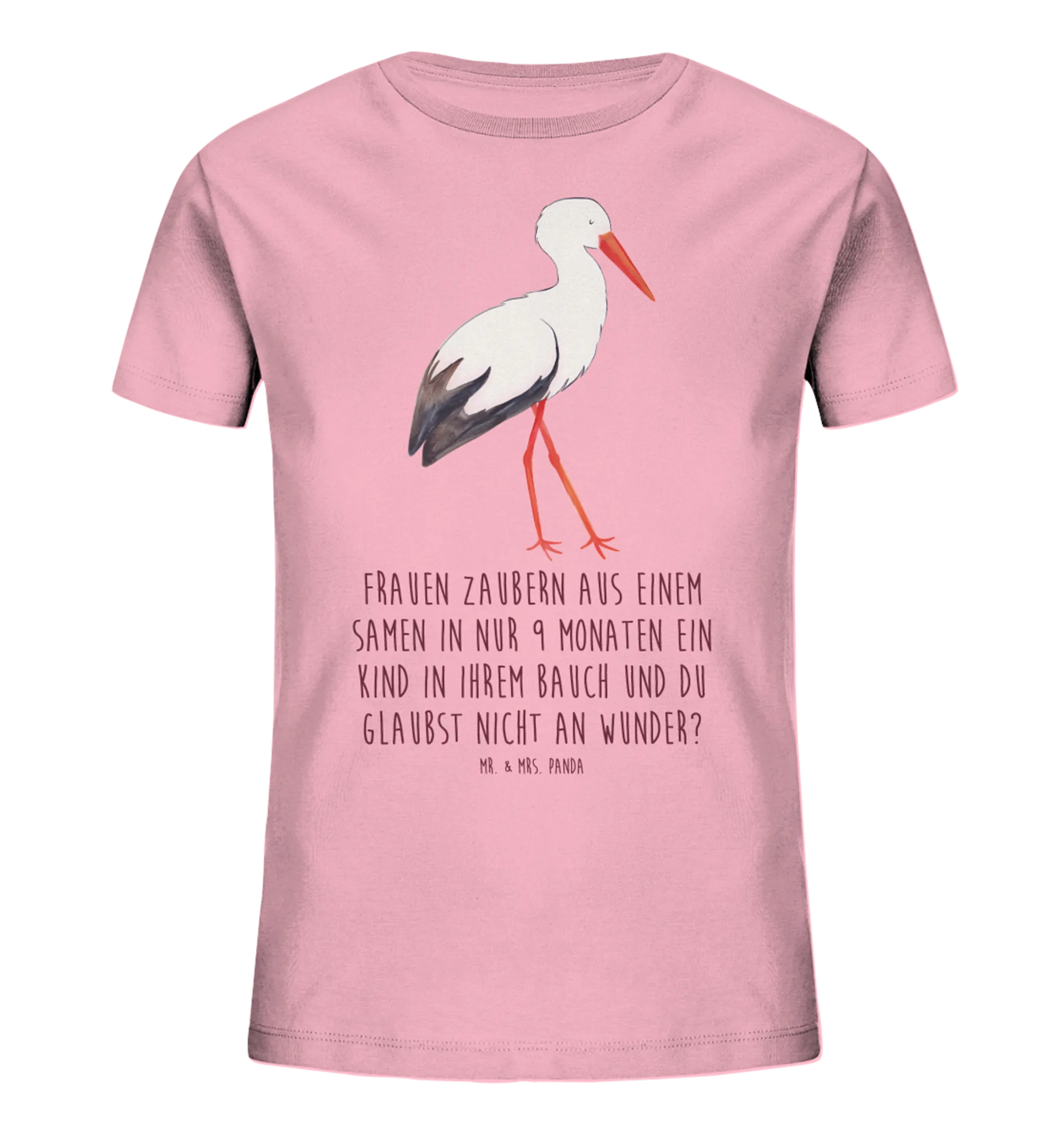 Das Organic Kinder T-Shirt mit dem süßen Storch-Motiv von Mr. & Mrs. Panda ist das perfekte Geschenk für werdende Mütter und ihre Kinder.