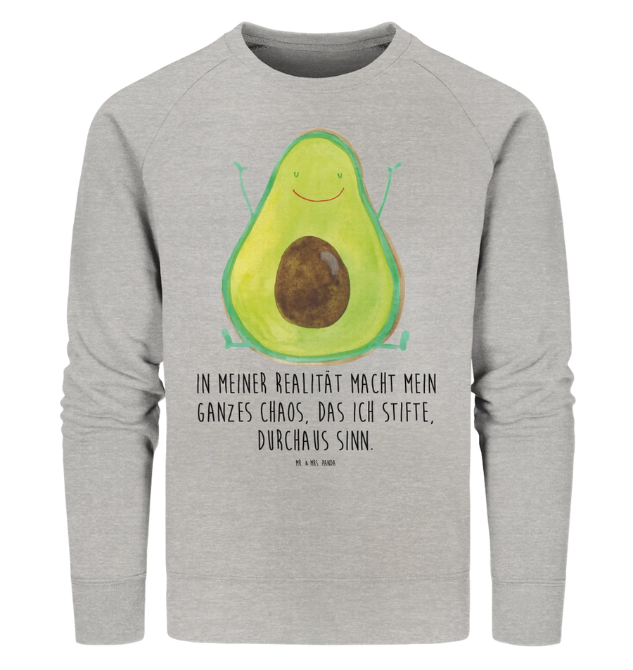 Organic Pullover Avocado Glücklich - Größe XXL - mit Spruch - Heather Grey