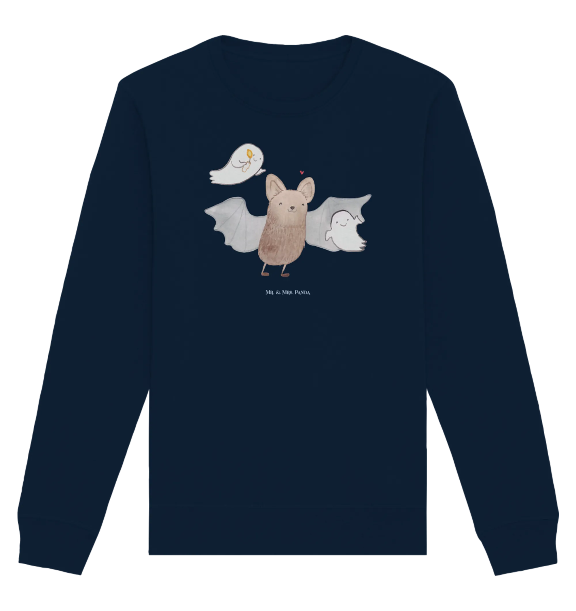 Entdecke unseren kuscheligen Bio-Pullover aus der Halloween-Kollektion mit dem zauberhaften Motiv „Fledermaus Gespenster“. Die niedliche Fledermaus und ihre zwei kleinen Gespenster-Freunde wurden liebevoll in Aquarell von Mrs. Panda gestaltet und bringen jede Menge Herbst- und Halloween-Flair in deinen Alltag. 🍂🦇