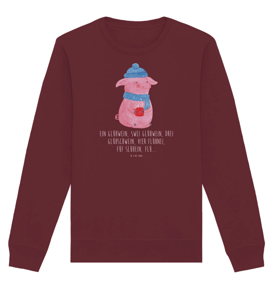 Organic Pullover Schweinchen Glühwein - Größe XXL - mit Spruch - Burgundy
