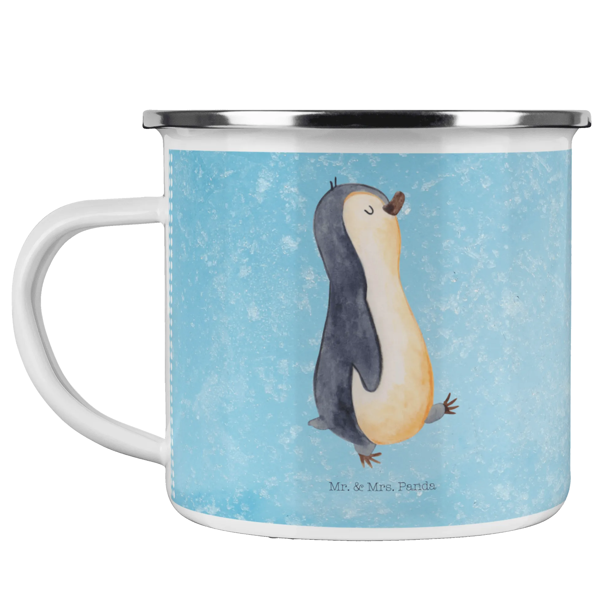 Die Camping Emaille Tasse mit dem süßen Motiv "Pinguin marschierend" aus der Pinguin-Kollektion von Mr. & Mrs. Panda ist der ideale Begleiter für alle Abenteuerlustigen unter uns! Egal, ob beim Camping, auf der Wanderung oder beim gemütlichen Picknick, diese Tasse ist nicht nur ein praktisches Utensil, sondern auch ein echter Blickfang. Mit einem Inhalt von 300 ml eignet sich die Tasse perfekt für heiße sowie kalte Getränke und sorgt dafür, dass du immer bestens versorgt bist, während du die Natur in vollen Zügen genießt.