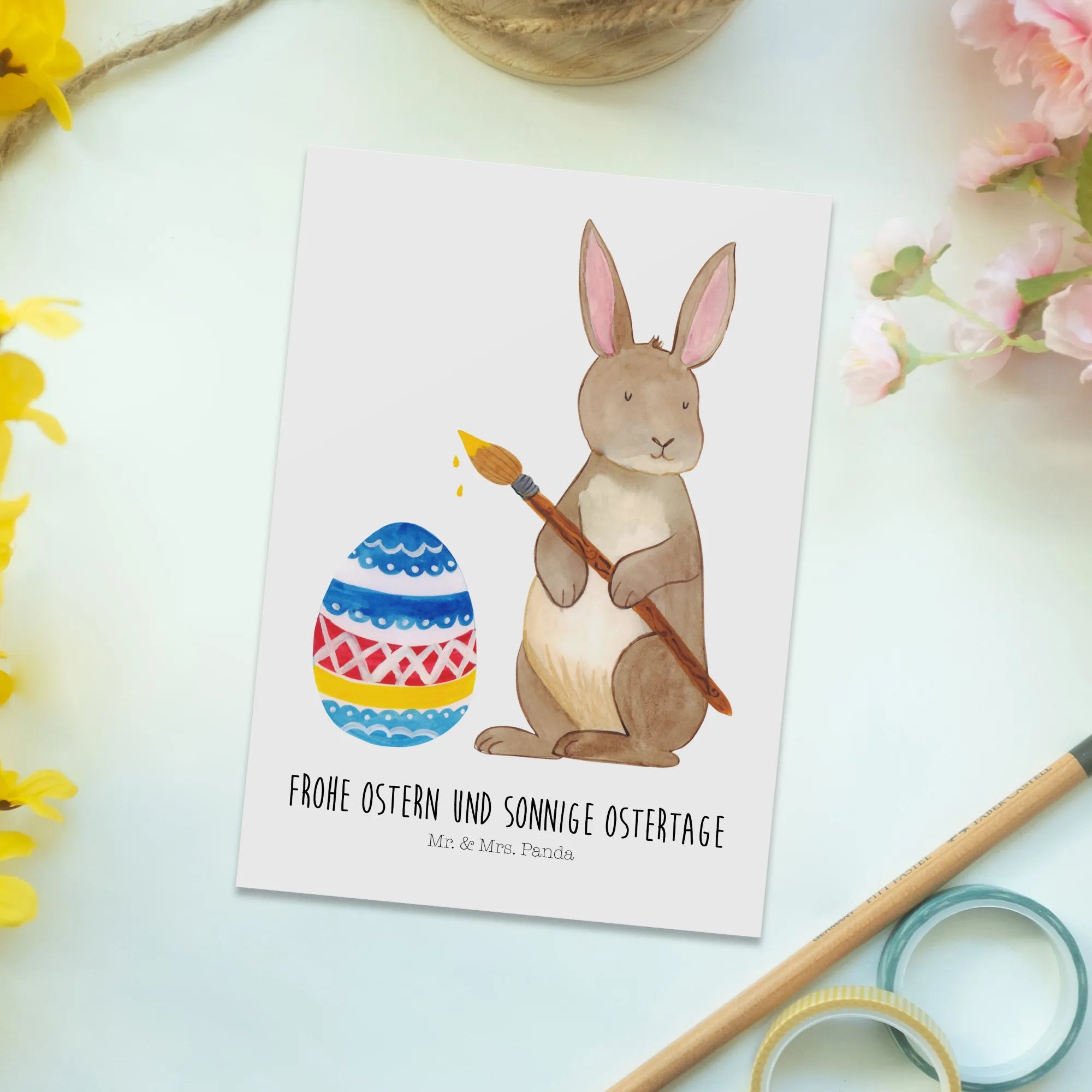 Postkarte "Hase Eiermalen" – Ein Herz für Ostern von Mr. & Mrs. Panda