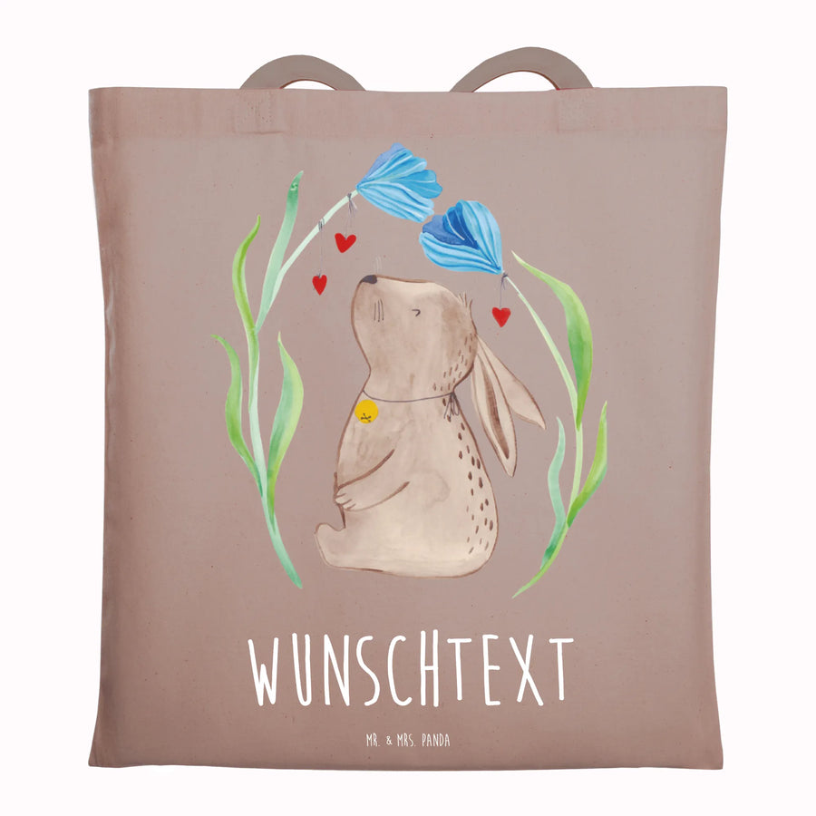 Personalisierte Tragetasche Hase Blume - Braun Pastell