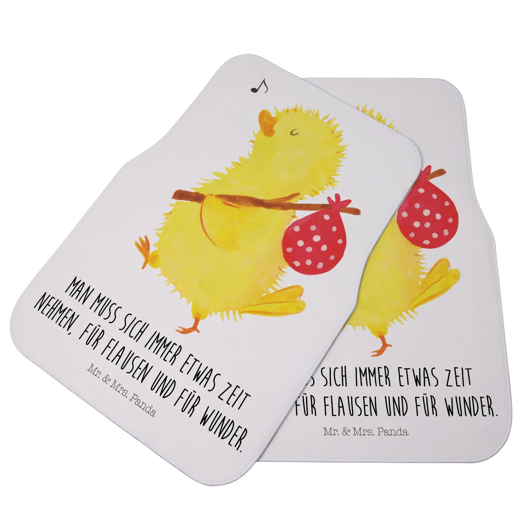Die Fahrer Autofußmatte Küken Wanderer aus der Ostern-Kollektion von Mr. & Mrs. Panda ist das perfekte Geschenk für alle, die ihr Auto mit einem fröhlichen und frühlingshaften Touch verschönern möchten! Jedes Mal, wenn Du in Dein Auto steigst, wirst Du von dem niedlichen Motiv eines kleinen, wandernden Küken mit einem kleinen Beutel begrüßt. Das Küken symbolisiert nicht nur die Freude des Frühlings, sondern auch die Unbeschwertheit und die schönen Momente, die Du auf Deinen Reisen erleben wirst.