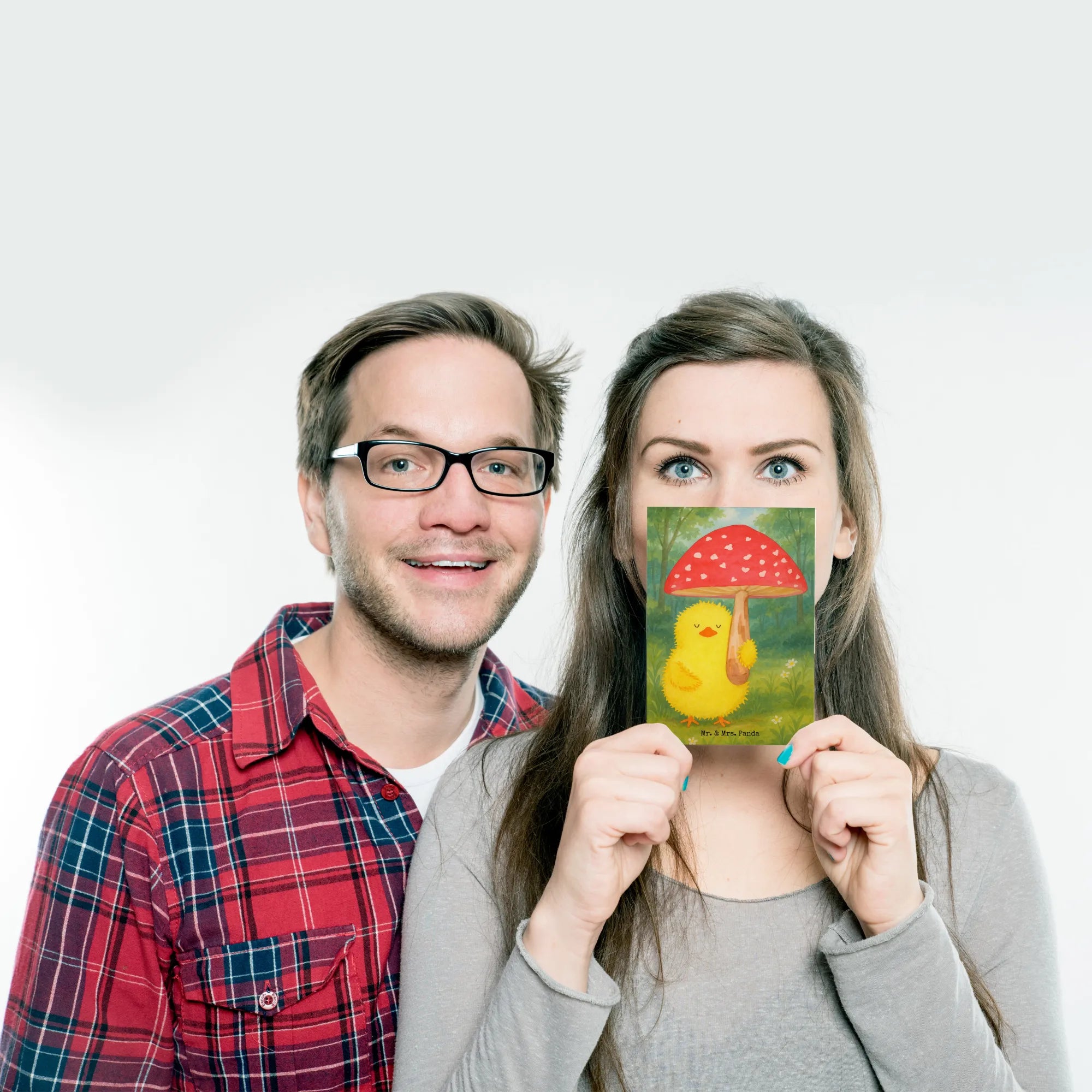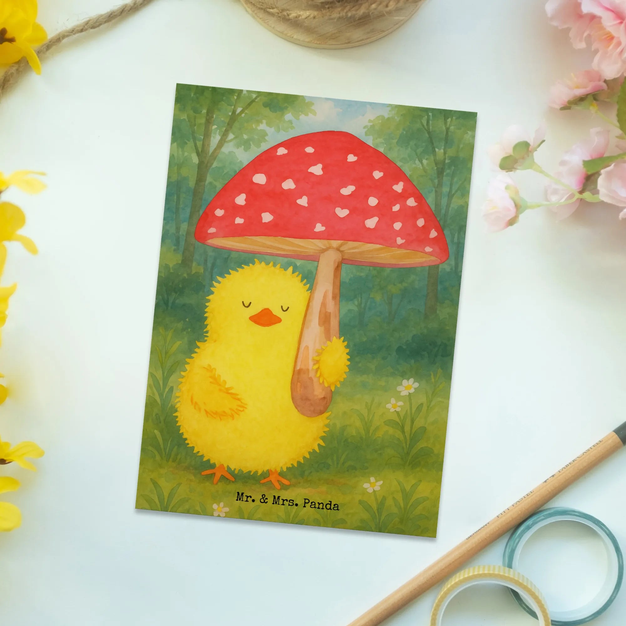Fröhliches Küken unter Fliegenpilz – Oster-Motiv für gute Laune und Freude