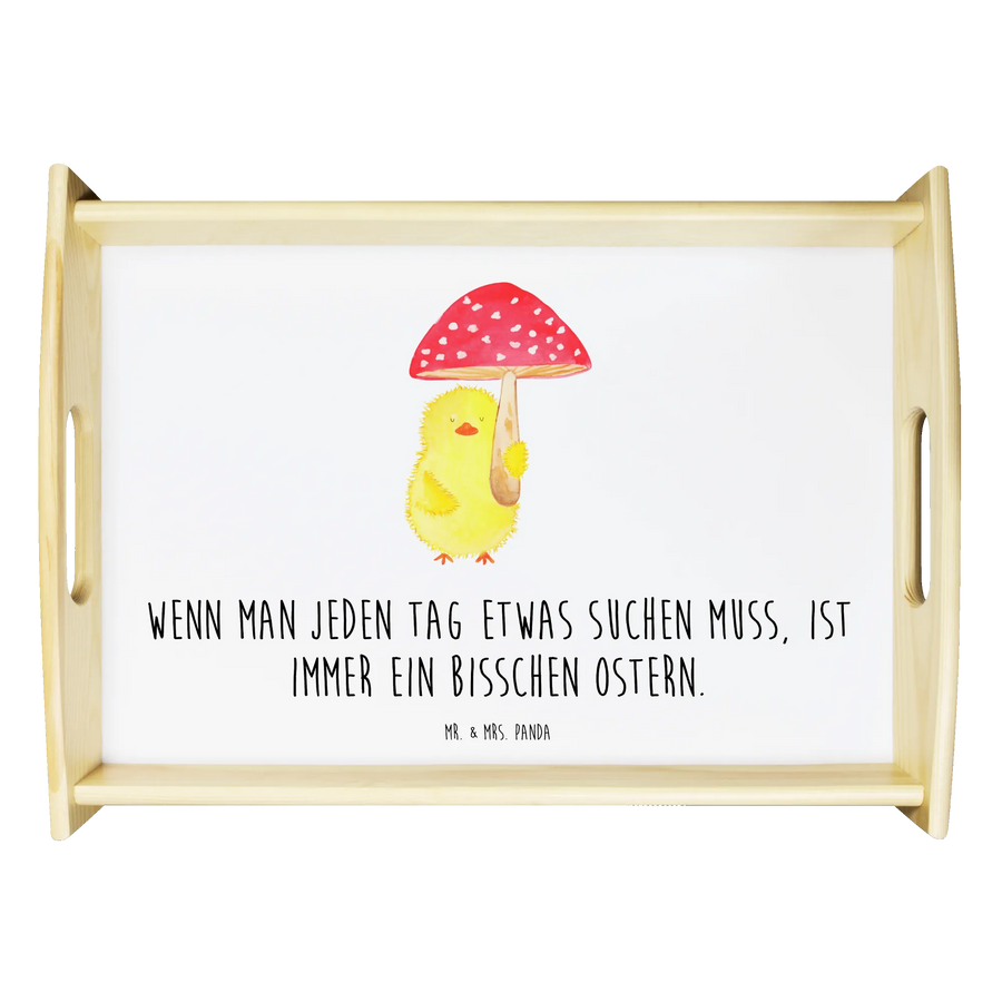 Entdecke das bezaubernde Serviertablett mit dem niedlichen Küken Fliegenpilz Motiv von Mr. & Mrs. Panda! Dieses wunderschöne und einzigartige Serviertablett aus lasiertem Echtholz ist der perfekte Begleiter für dein Frühstück im Bett oder auf der Couch.