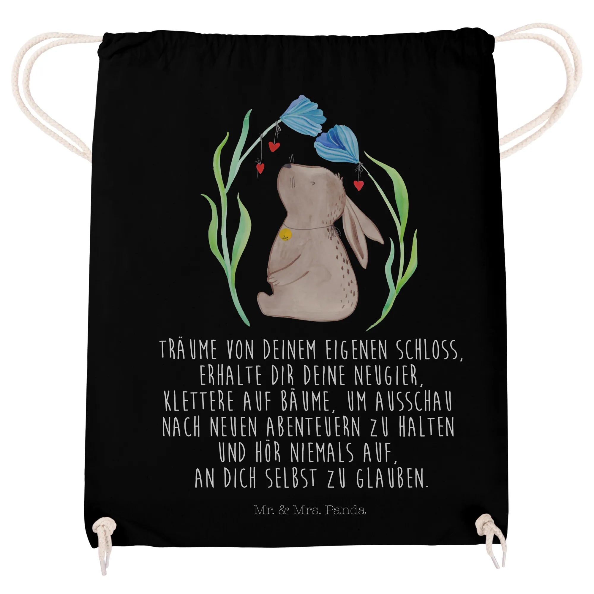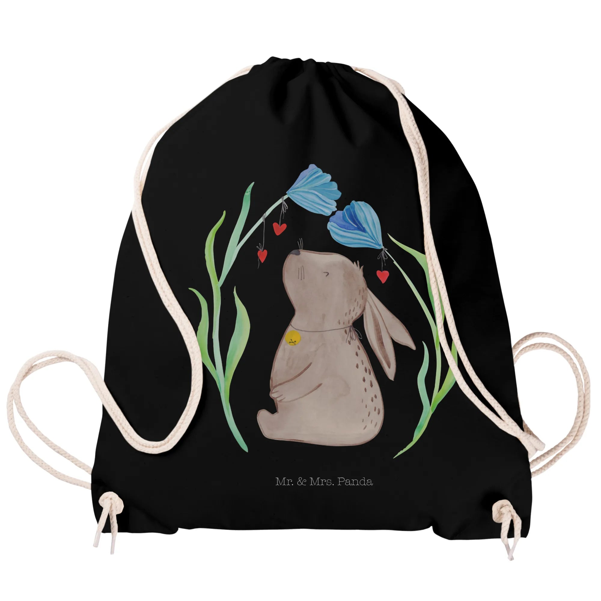 Sportbeutel Hase Blume - ohne Spruch - Schwarz