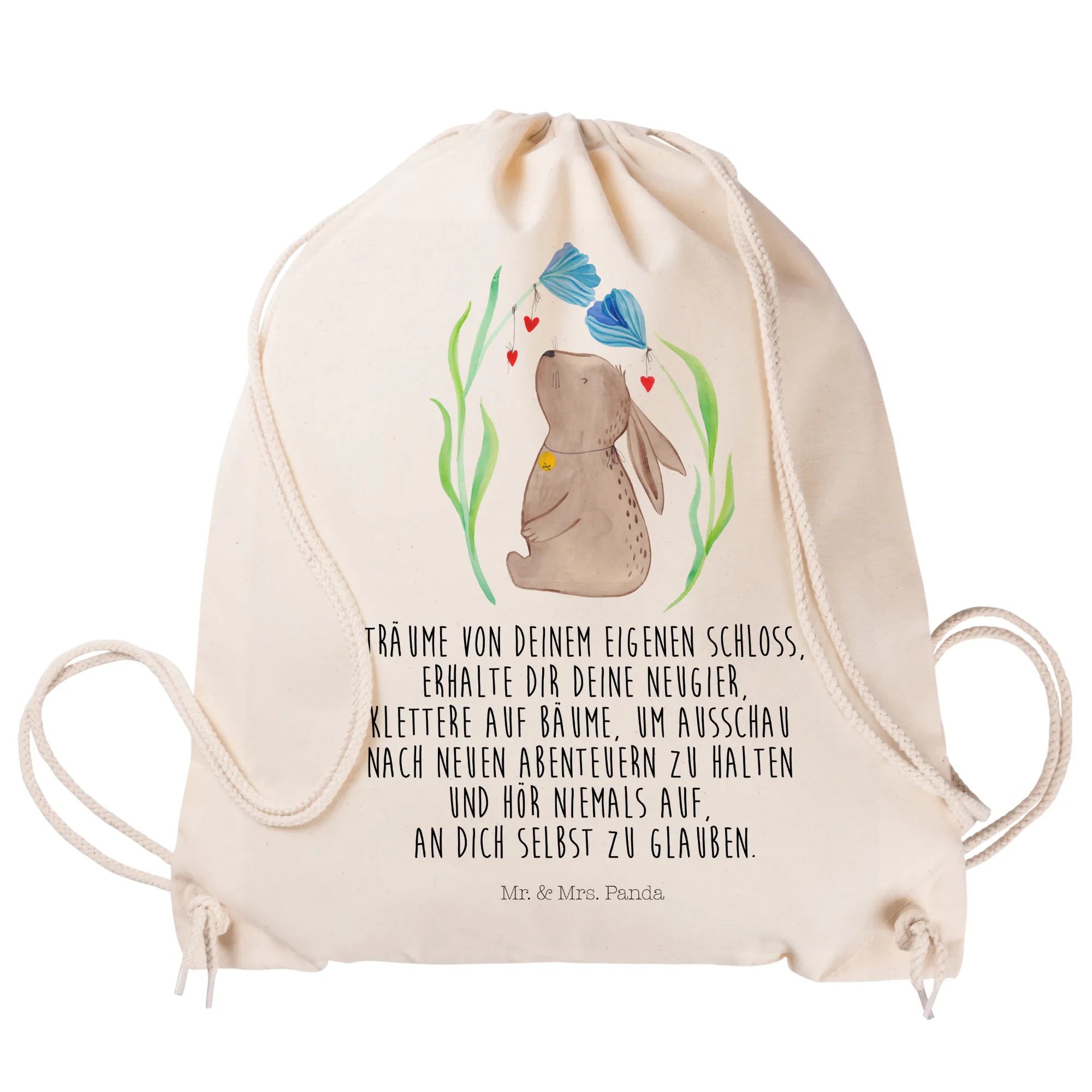 Entdecke den bezaubernden Sportbeutel "Hase Blume" aus der Ostern - Kollektion von Mr. & Mrs. Panda! Dieser einzigartige Sportbeutel ist mehr als nur ein praktisches Accessoire; er ist ein Ausdruck von Freude und Kreativität! Mit seinem liebevollen Motiv eines kleinen Hasen, der fröhlich zwischen großen Blumen sitzt, bringt er die fröhliche Stimmung des Frühlings in deinen Alltag.