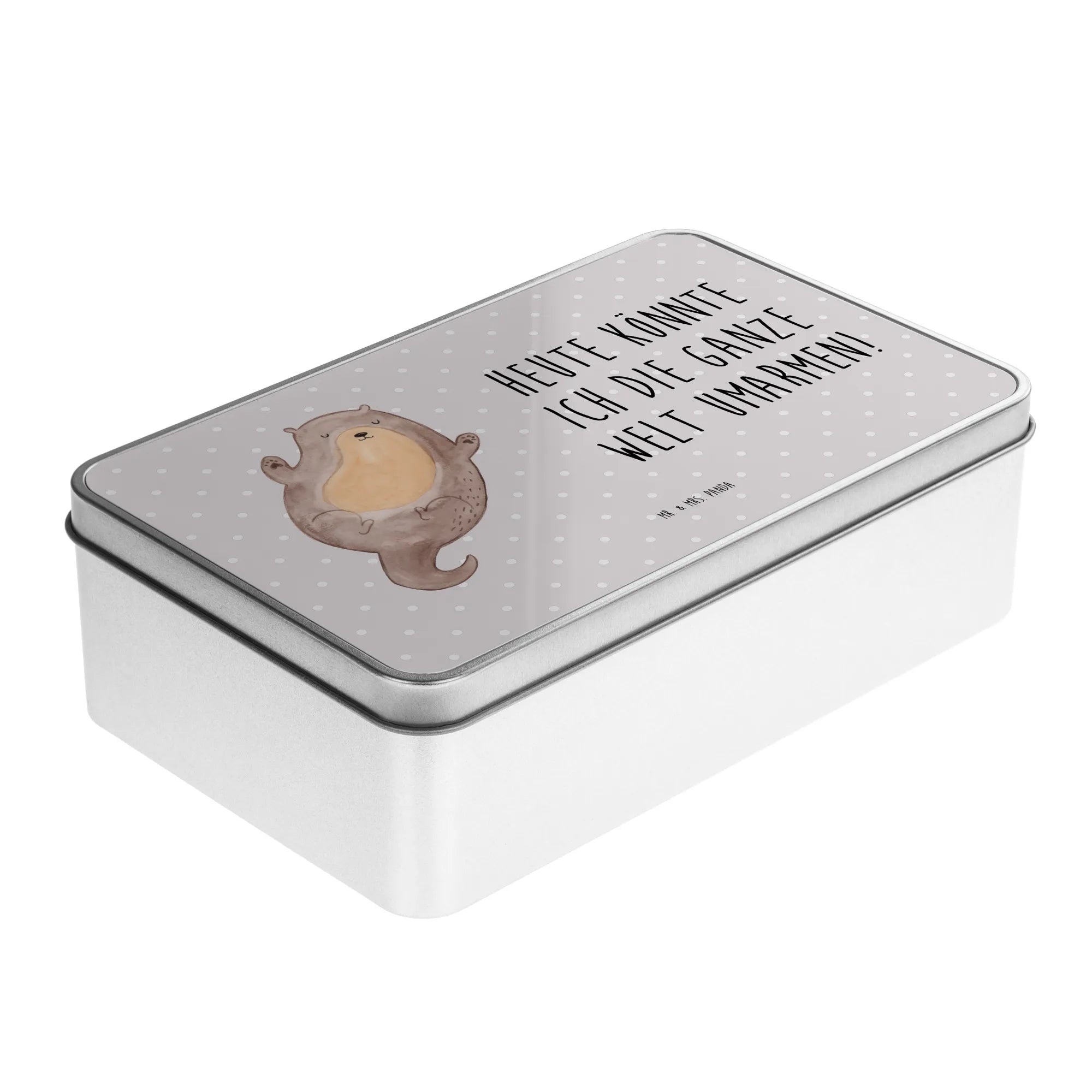 Entdecke die wunderschöne Metalldose rechteckig mit dem niedlichen Motiv 'Otter Umarmen' aus der Otter-Kollektion von Mr. & Mrs. Panda. Diese liebevoll gestaltete Dose zeigt einen fröhlichen Otter, der auf dem Rücken schwimmt und seine Arme weit ausbreitet, um die Welt zu umarmen. Der dazugehörige Spruch 'Heute könnte ich die ganze Welt umarmen!' strahlt pure Lebensfreude und Positivität aus, was sie zum perfekten Geschenk für viele Anlässe macht.