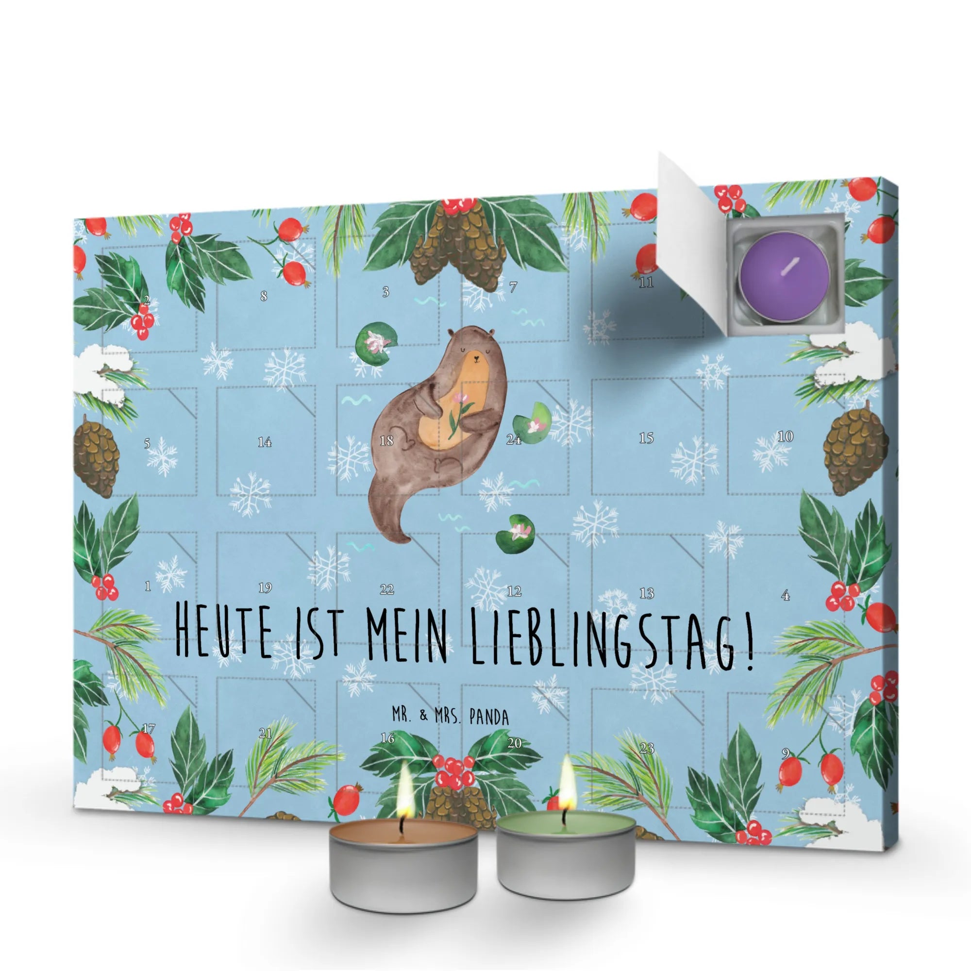 Der wunderschöne Duftkerzen Adventskalender "Otter mit Seerose" aus der Otter-Kollektion von Mr. & Mrs. Panda ist das perfekte Geschenk für all jene, die die besinnliche Adventszeit in vollen Zügen genießen möchten. Mit seinem liebevollen Design, das einen fröhlichen Otter zeigt, der durch die Seerosen schwimmt, versprüht dieser Adventskalender pure Lebensfreude.